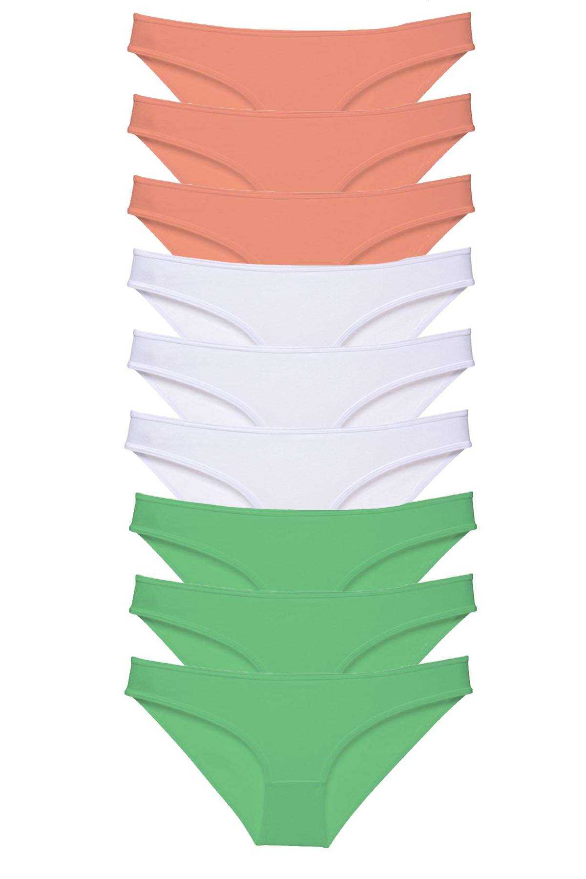9 Adet Süper Eko Set Likralı Kadın Slip Külot Pudra Beyaz Yeşil