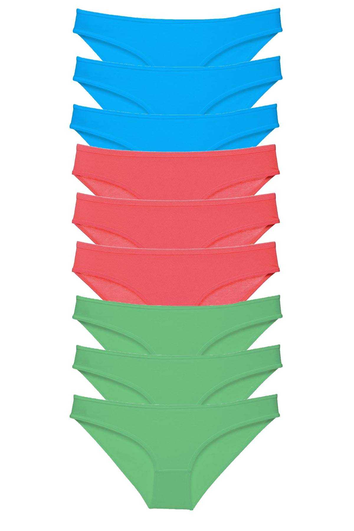 9 Adet Süper Eko Set Likralı Kadın Slip Külot Yeşil Fuşya Mavi