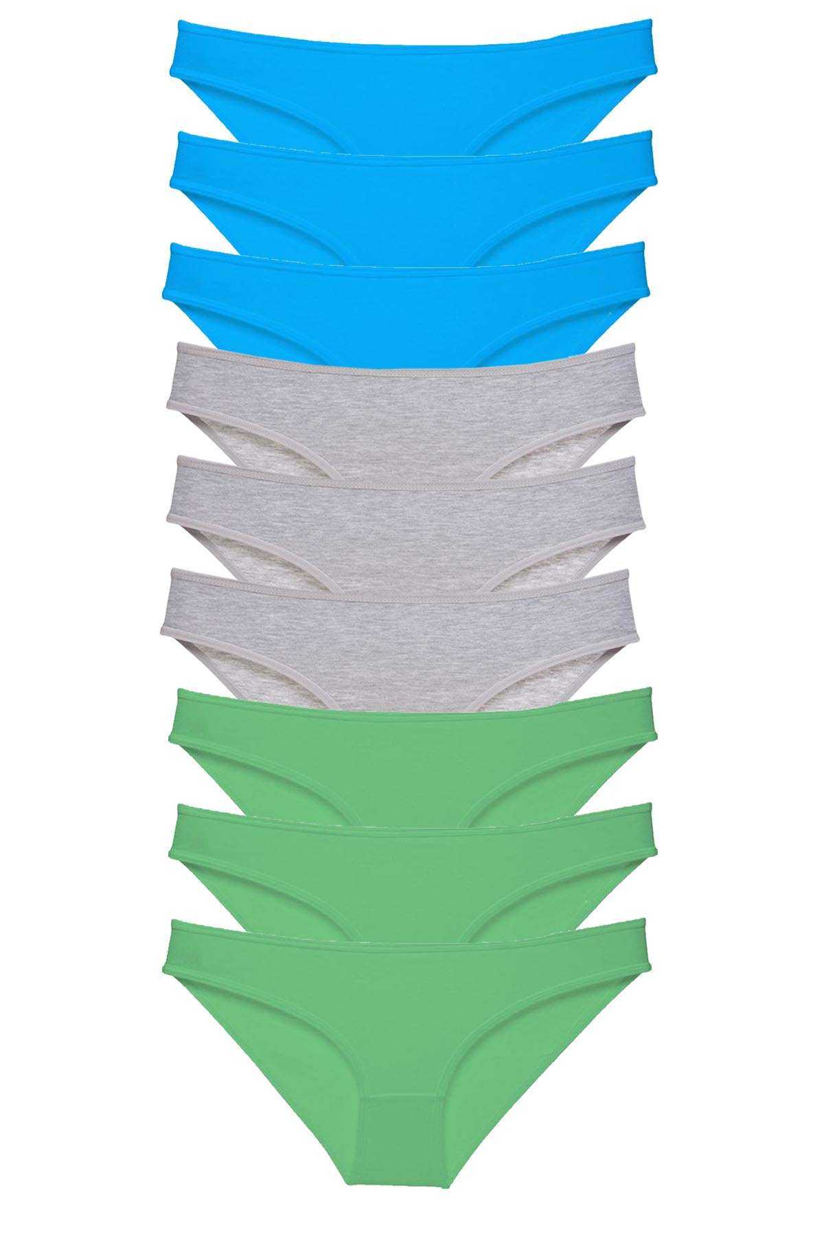 9 Adet Süper Eko Set Likralı Kadın Slip Külot Yeşil Gri Mavi