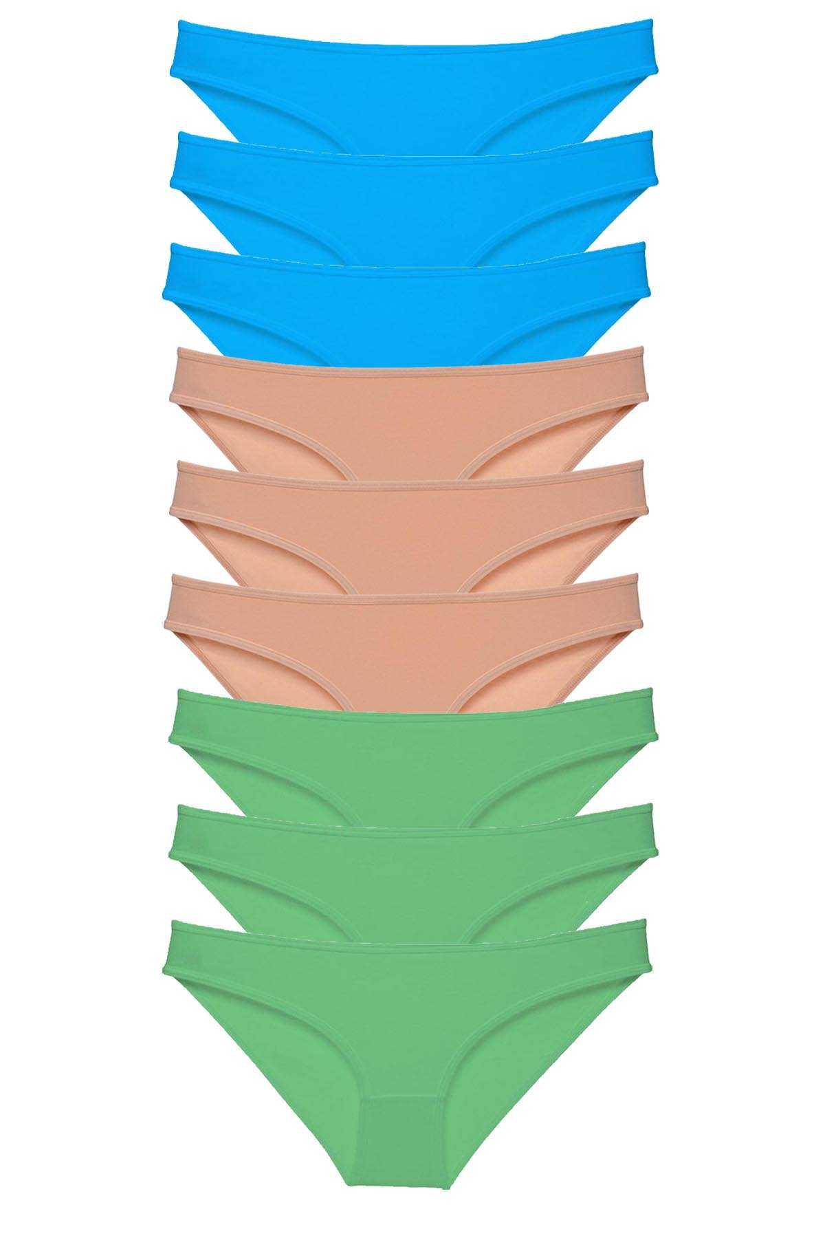 9 Adet Süper Eko Set Likralı Kadın Slip Külot Yeşil Ten Mavi