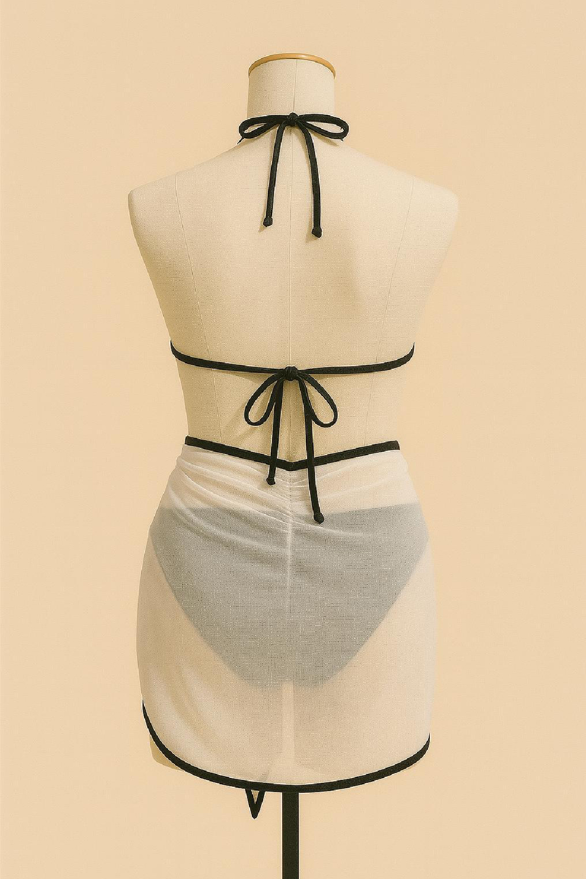 Göz alıcı siyah beyaz kontrastıyla dikkat çeken bu bikini seti, hem şıklığı hem de rahatlığı bir araya getiriyor. İncecik bağlamaları, pareosu ve bralette üst tasarımıyla yazın vazgeçilmezi olmaya aday!