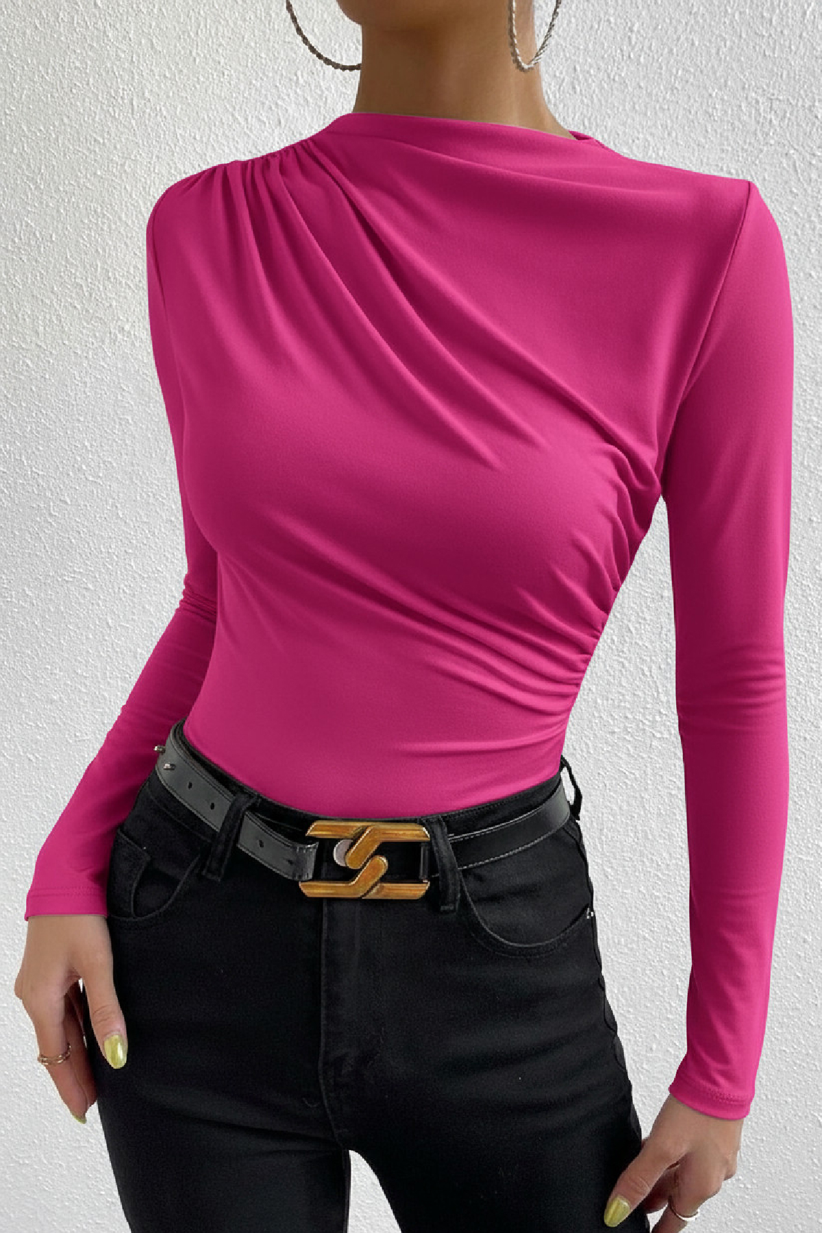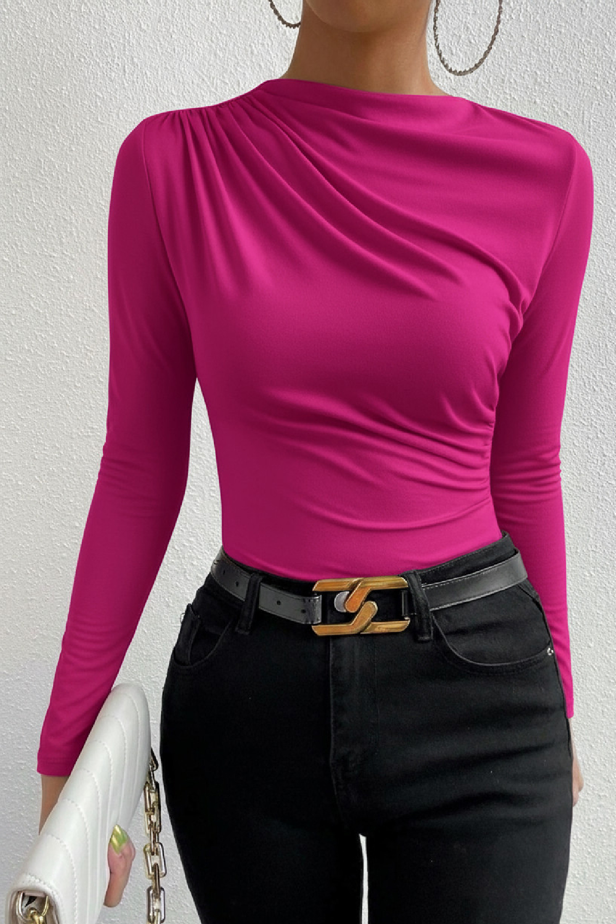 Enerjik Tarzın İmzası: Fuşya Büzgülü Uzun Kollu Bluz