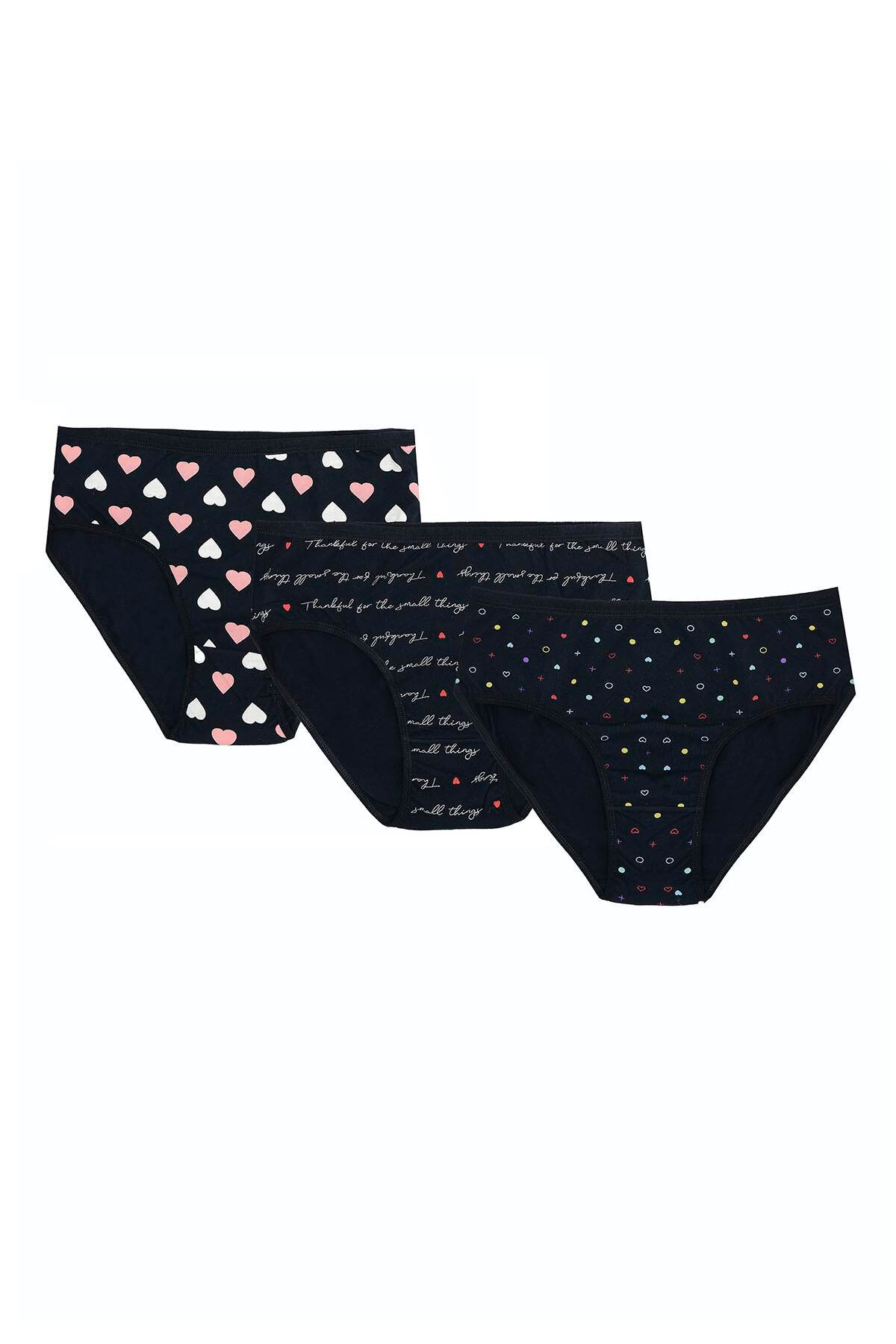 Büyük Beden Pamuklu Likralı Karışık Renkli 3'lü Külot