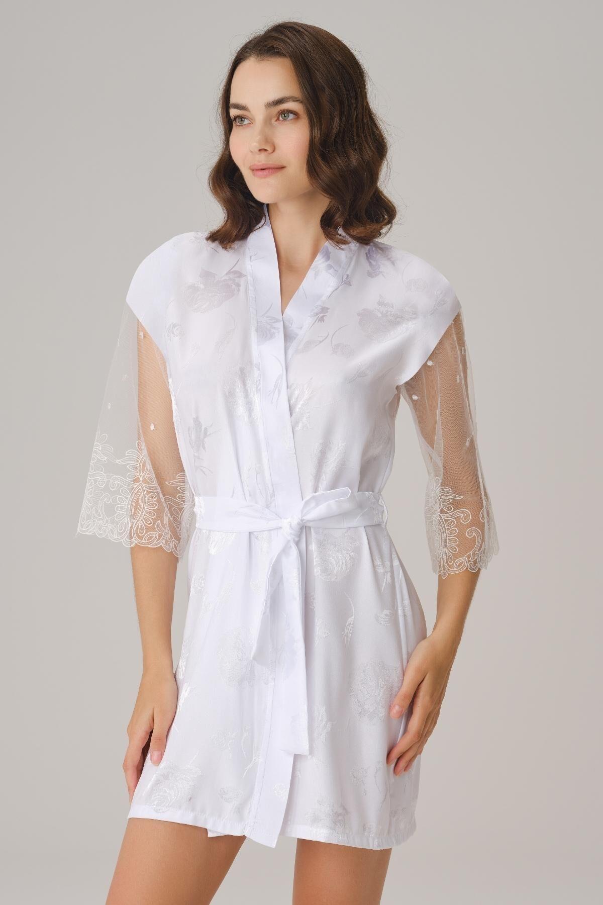 - Çeyizlik Uzun Kol V Yaka Kadın Saten Düz Yazlık Mini Dantel Detaylı Sabahlık