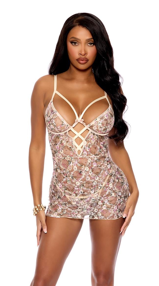Çiçek Desenli İp Detaylı Tül Fantezi Gecelik