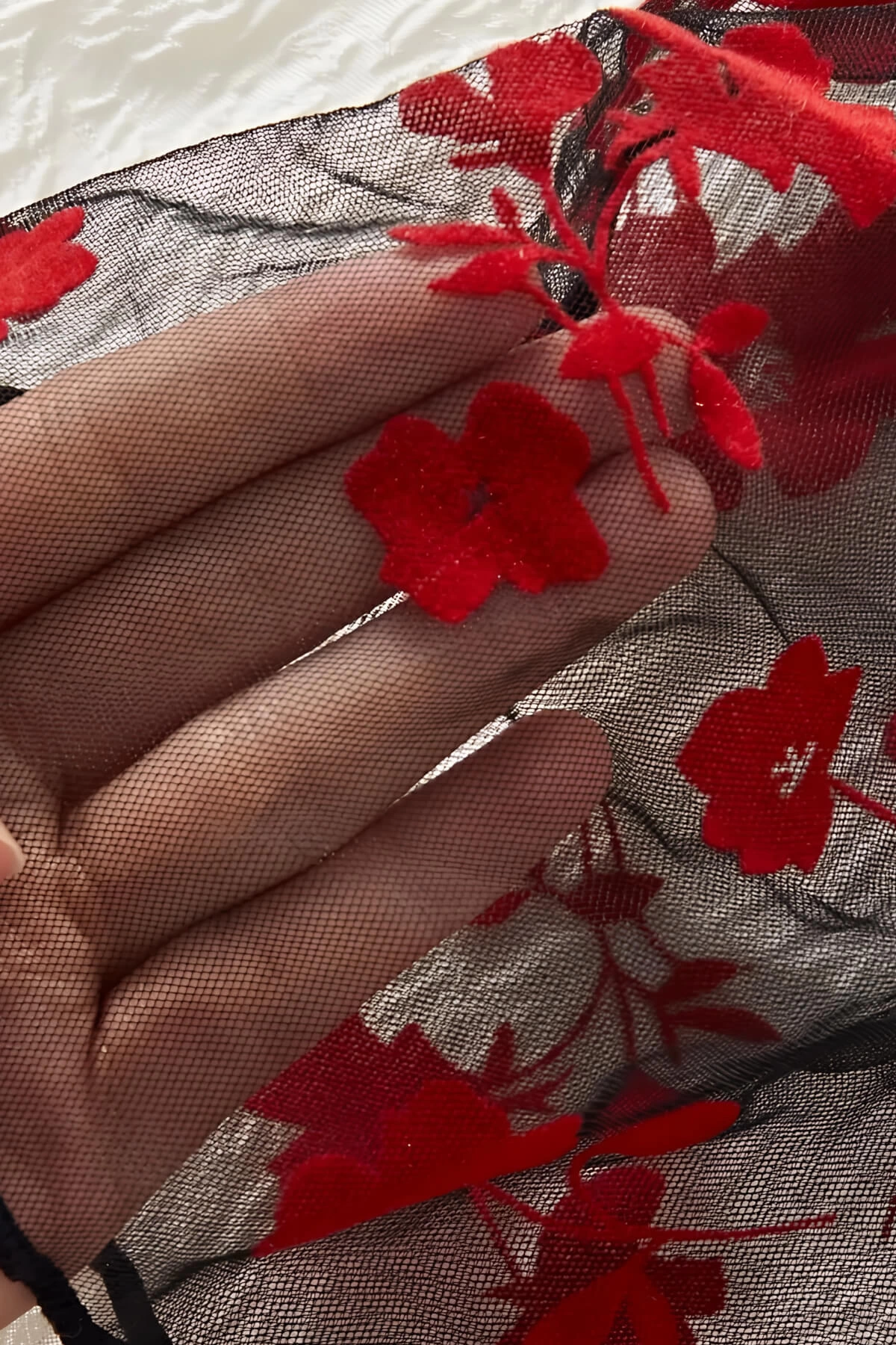 - Çiçek Desenli Siyah Transparan Şortlu Gecelik
