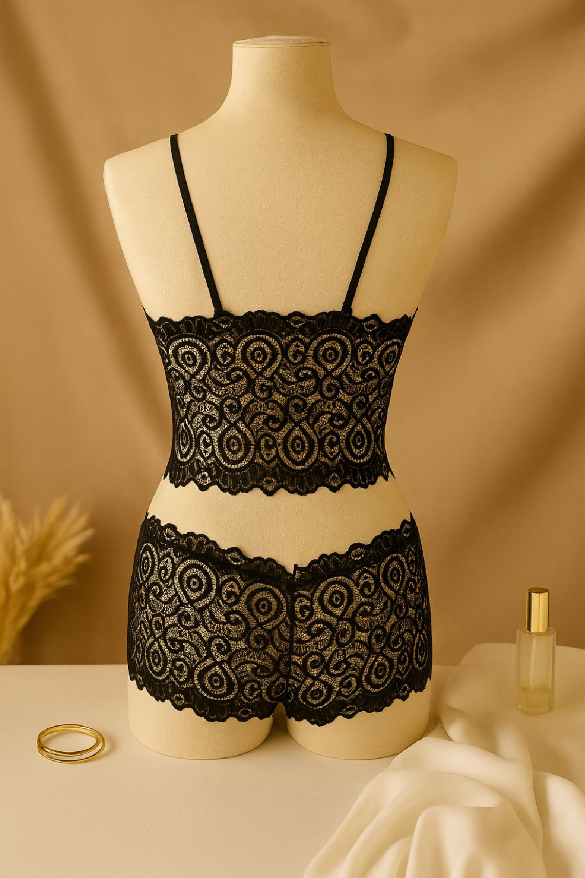 - Kumaş: Yumuşacık ve esnek siyah dantel