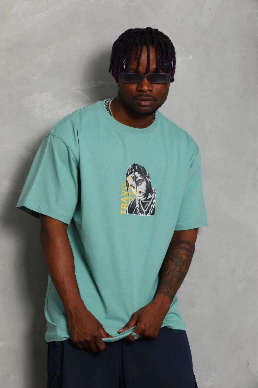 Erkek Baskılı T-Shirt Kısa Kol Bisiklet Yaka Regular Fit Tişört - Mint Yeşili