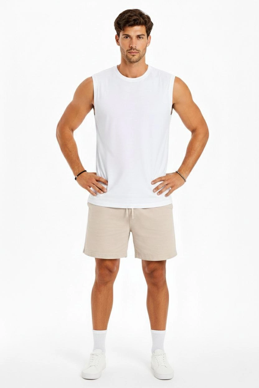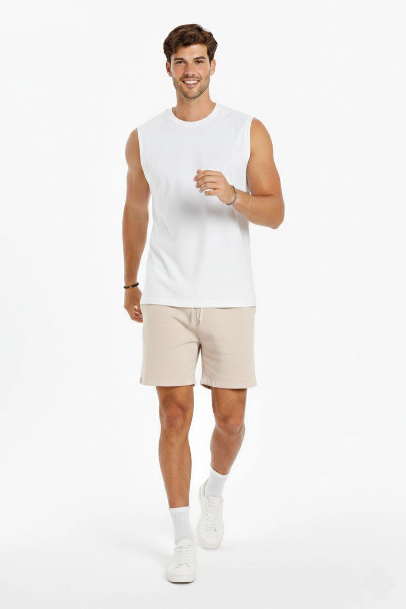 Erkek Sıfır Kolsuz Atlet Bisiklet Yaka Oversize Basic Spor Üst, Günlük ve Fitness Kullanımına Uygun - Beyaz