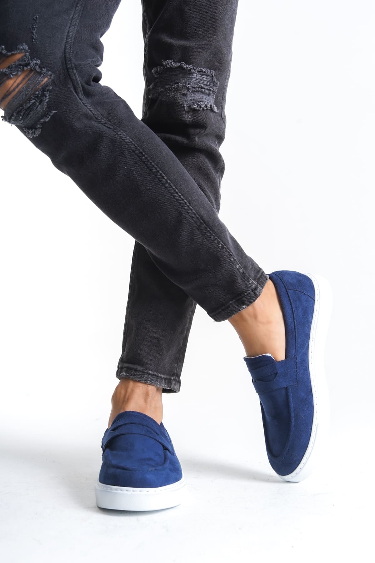 Estilo X Lacivert Süet Bağcıksız Erkek Ayakkabı - Klasik Spor Şıklık