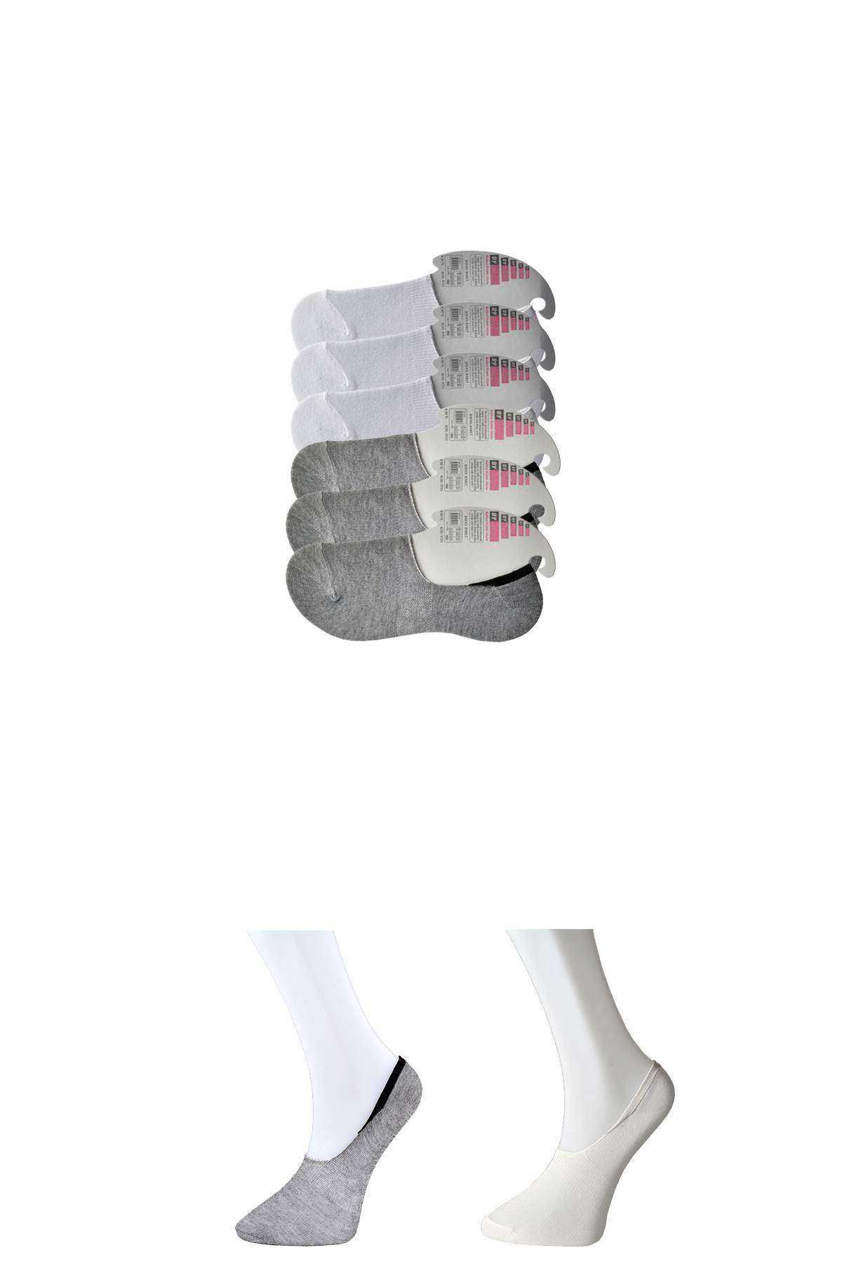 - Gri Ve Beyaz Kadın Babet Çorap 6 Çift