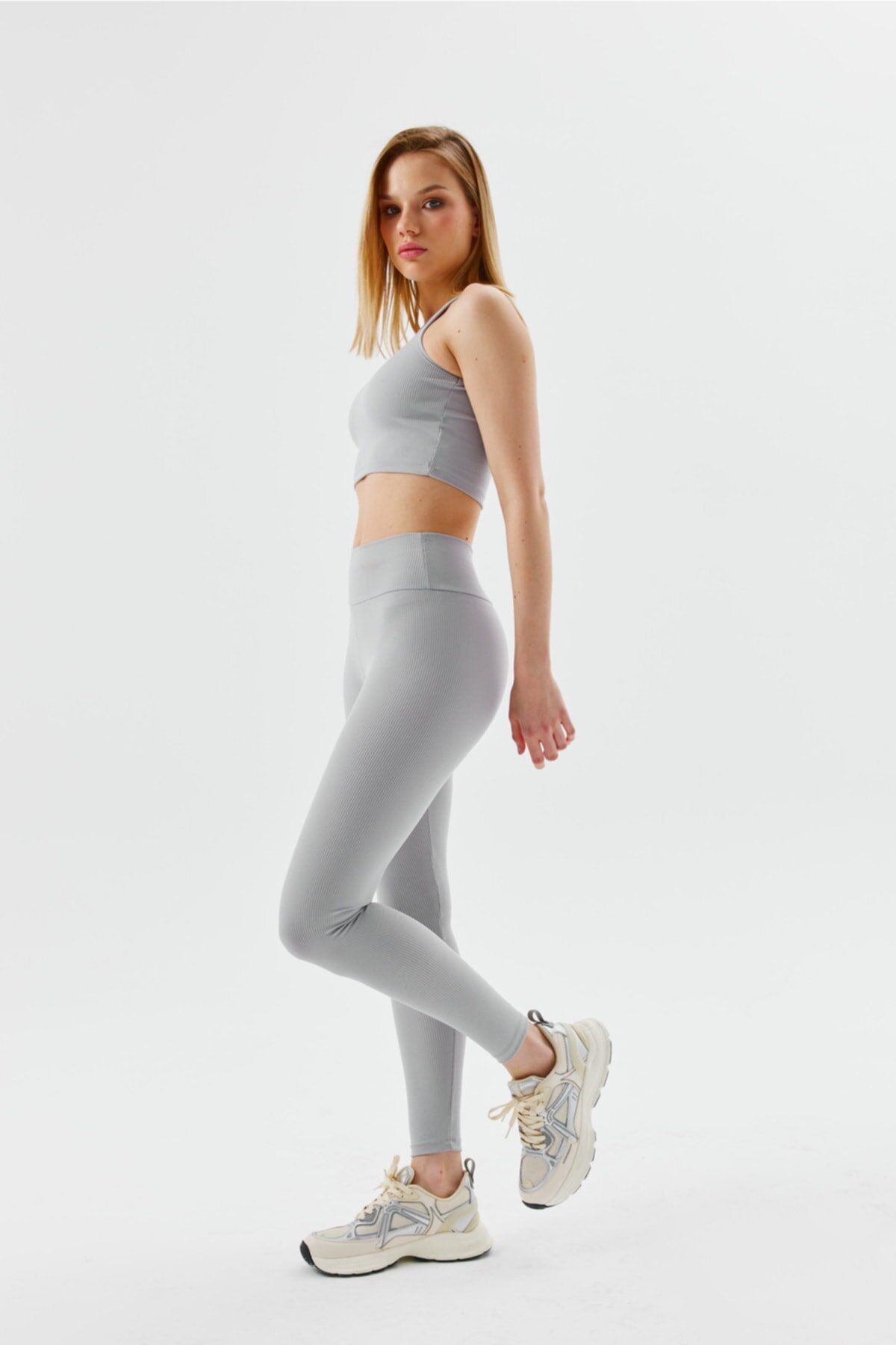 - Gri Yüksek Bel Fitilli Tayt 0608