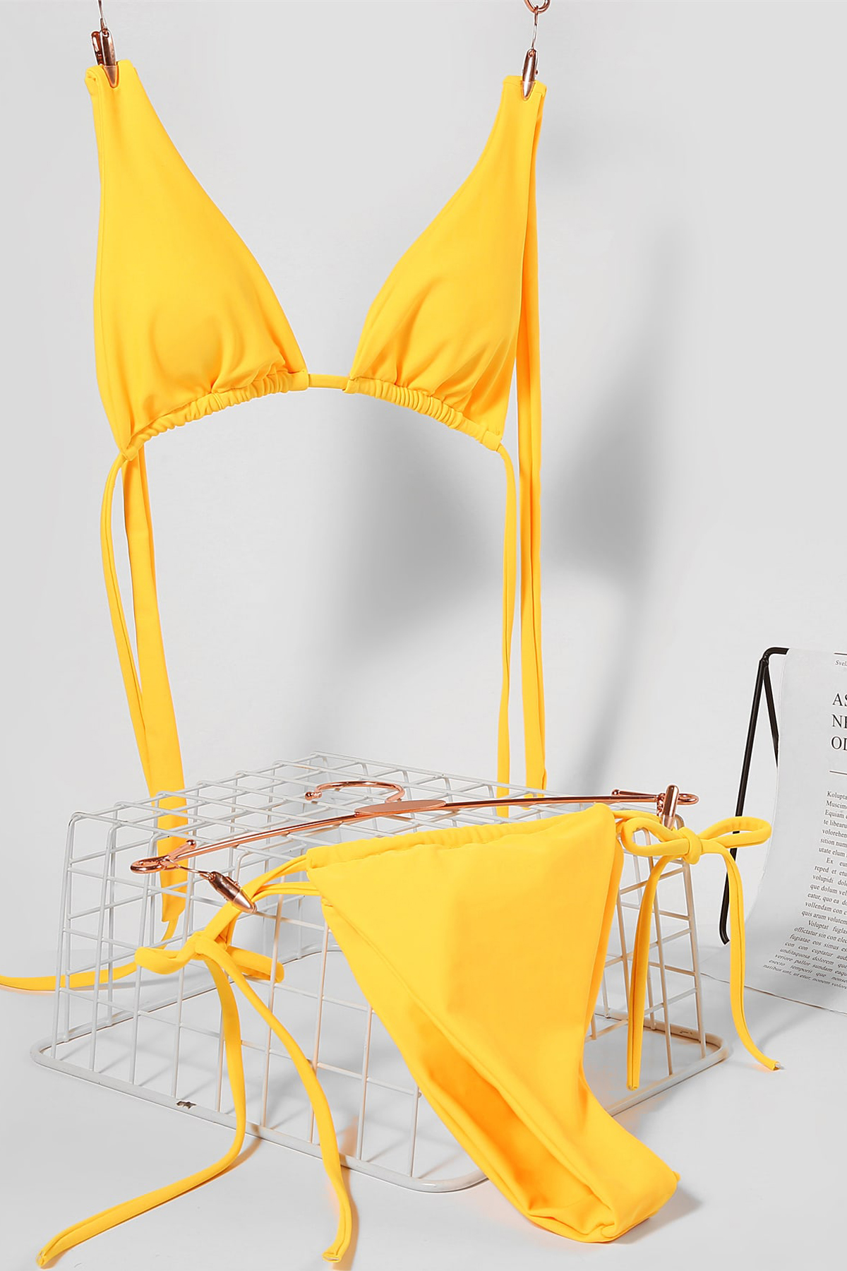 Göz alıcı sarı tonuyla dikkat çeken bu bikini, tropikal tatillerin ve yaz aşkının simgesi! Üründe gördüğünüz gibi, şık bir üçgen kesimle öne çıkan bikini, yandan bağlama özelliği ile vücut hatlarını kusursuz bir şekilde ortaya çıkarıyor. Görseldeki model 38 beden olup, ürün numune olarak S/M bedendir.