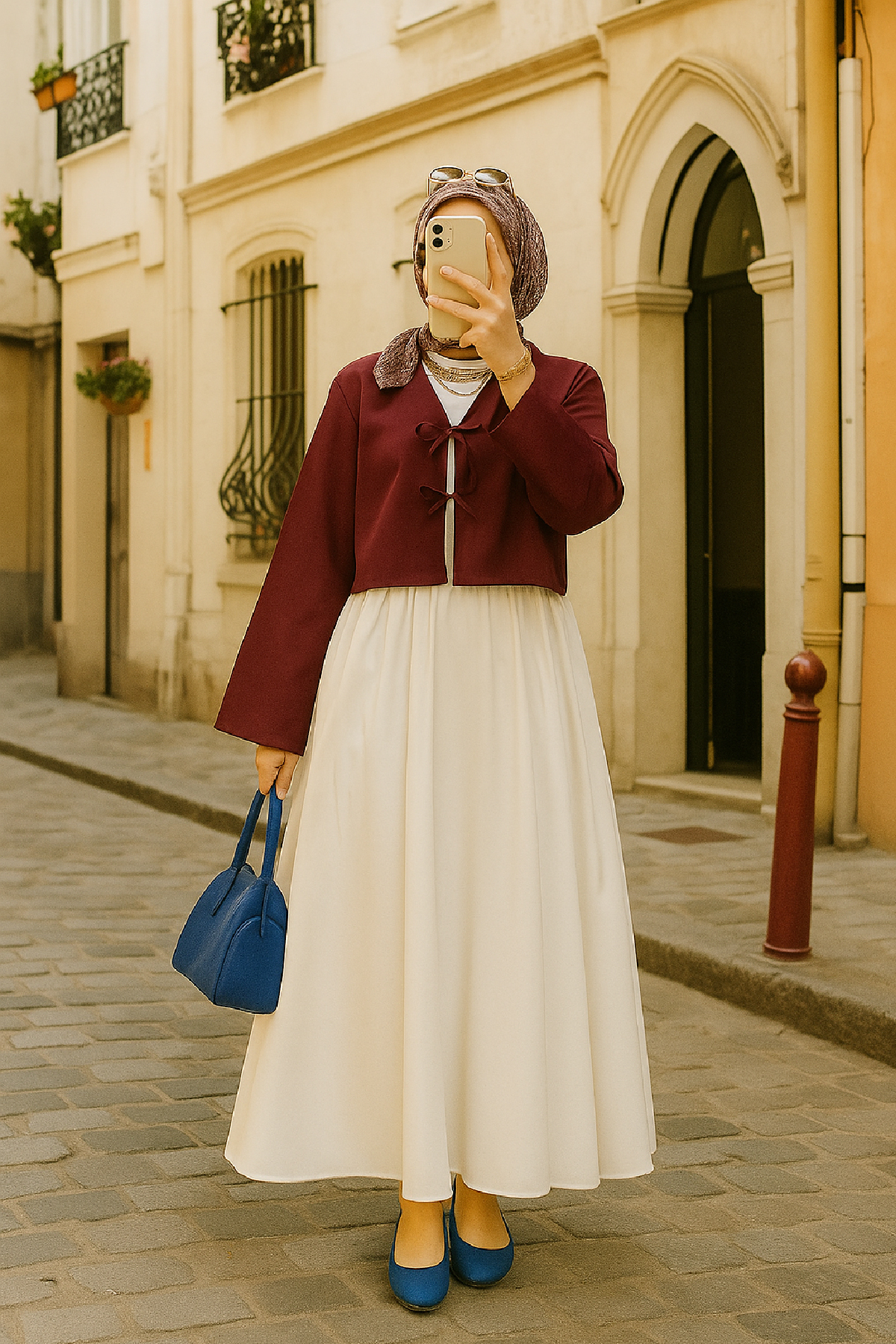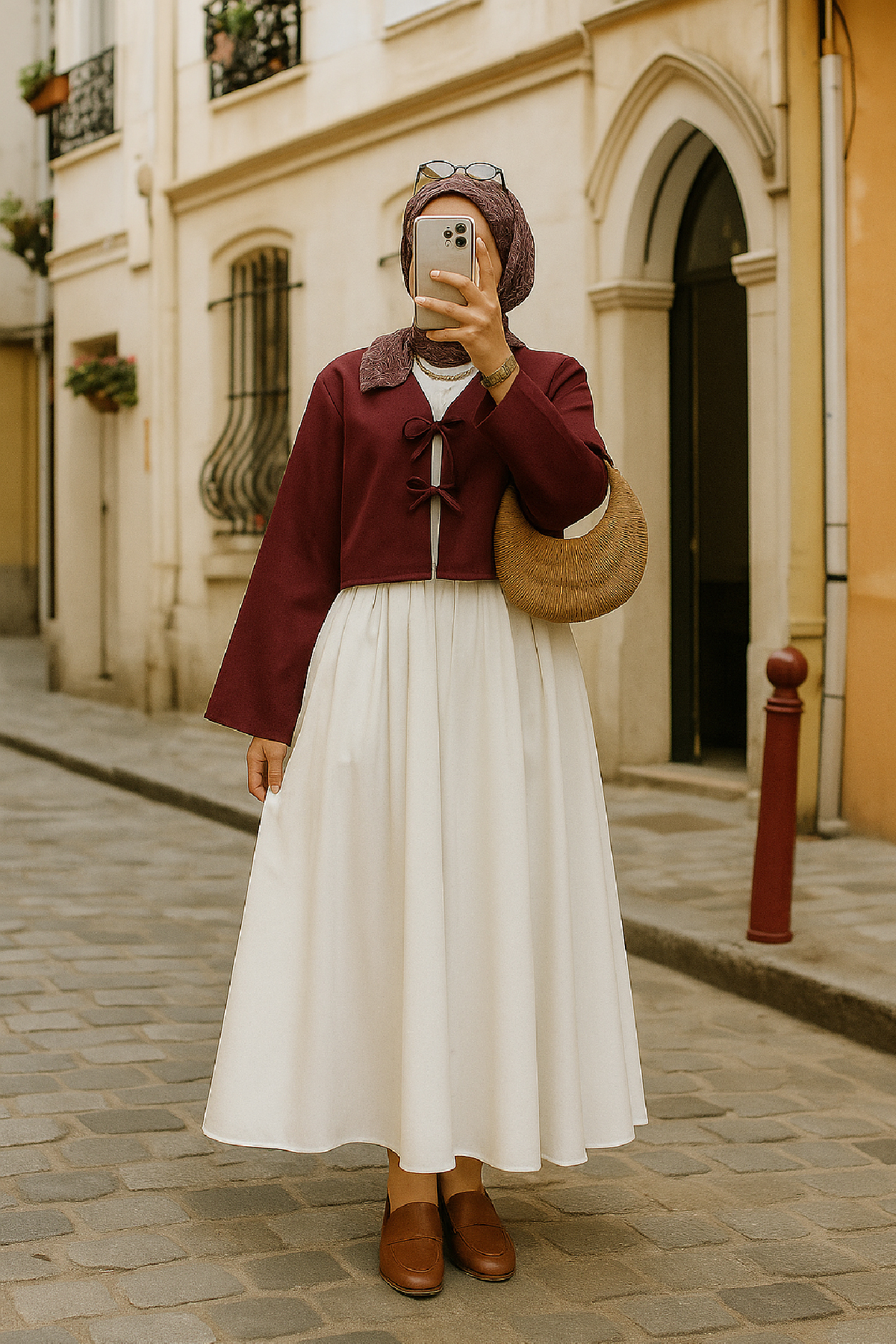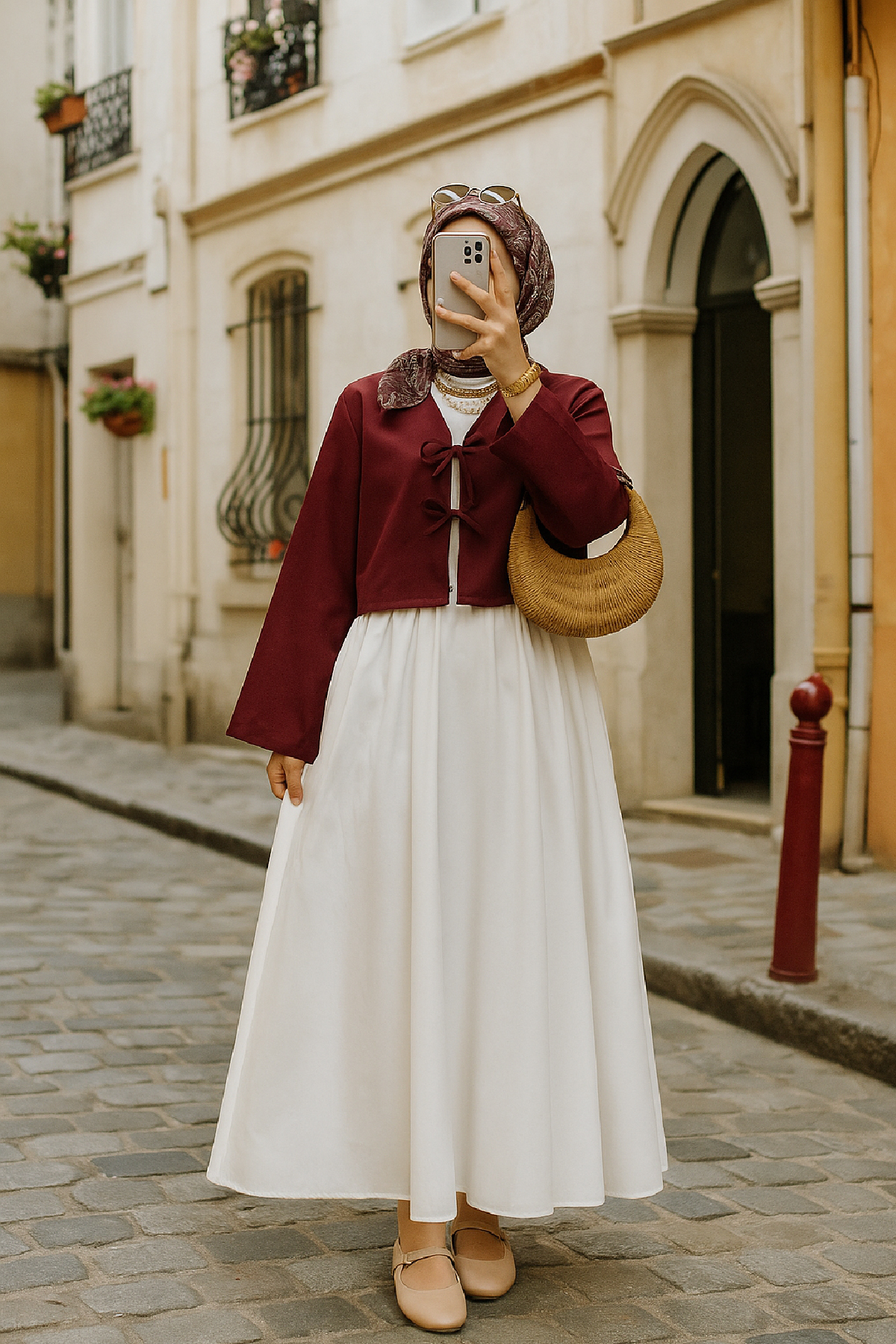 Bu bordo kimono ceket, beyaz veya krem rengi elbiselerle bir araya getirildiğinde ferah ve zarif bir görünüm yaratır. Geniş paça pantolonlar ve topuklu ayakkabılarla tamamlandığında ise sofistike bir şehir stili elde edebilirsiniz. Tesettür giyimde uzun tunik veya elbise üzerine kombinlenerek şık bir alternatif sunar. Şehirde özgün ve dikkat çekici bir tarz yaratmak isteyenler için idealdir.