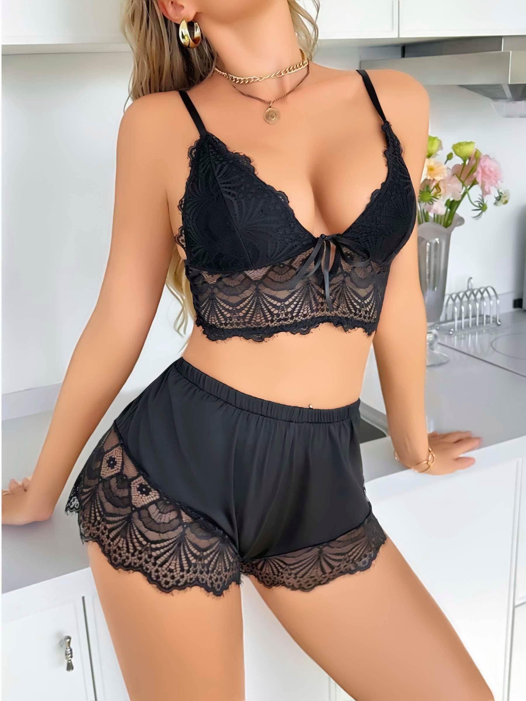 - Kadın Siyah Dantel Detaylı Şortlu Pijama Takımı 5054