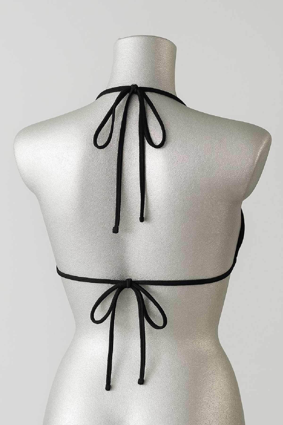 Kadın Siyah Pedli Üçgen Bikini Üstü Halter Bağlamalı Aksesuarlı
