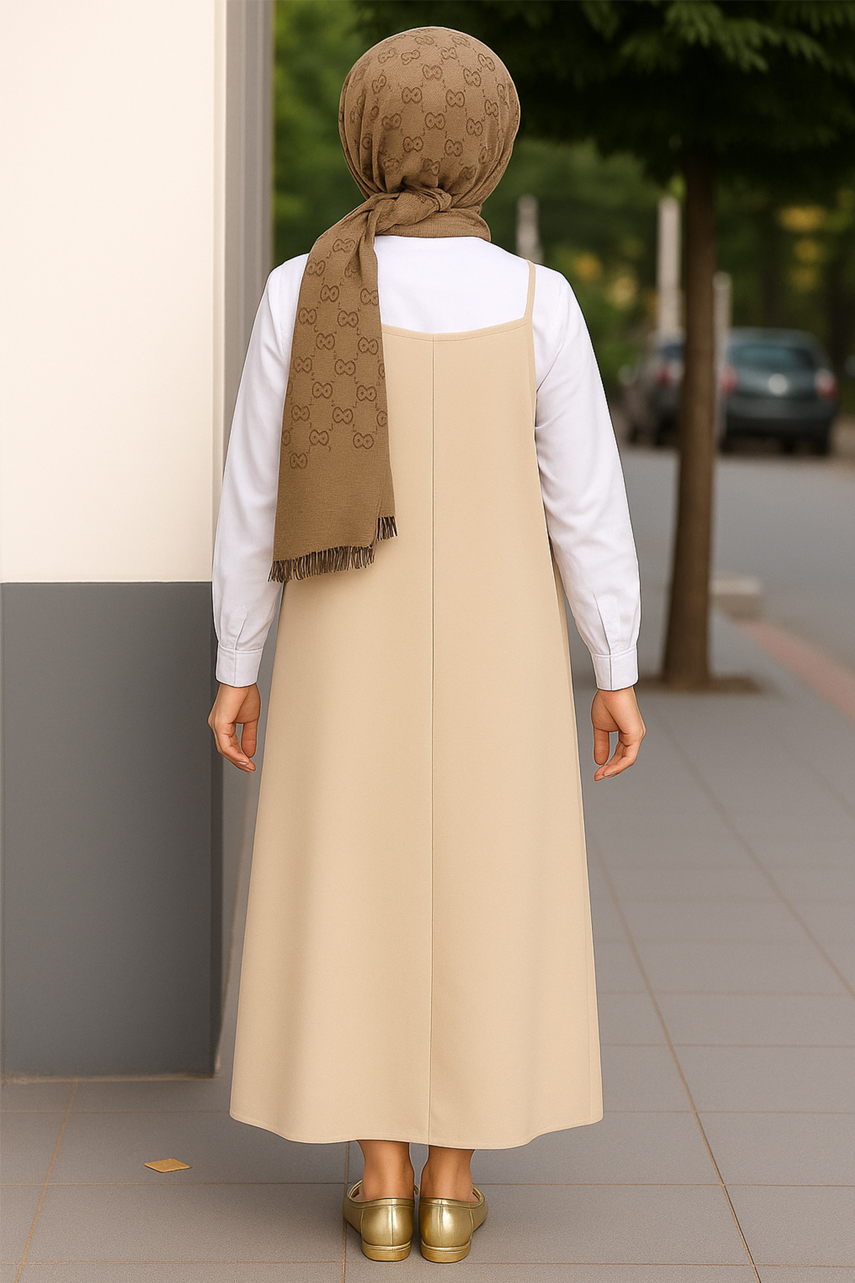 Kadın Taş Rengi Basic Ayarlanabilir Askılı Jile Elbise