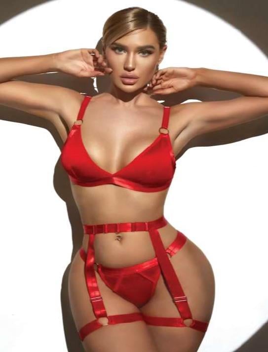 - Kırmızı Bacak Aksesuarlı Fantezi Jartiyer Takım