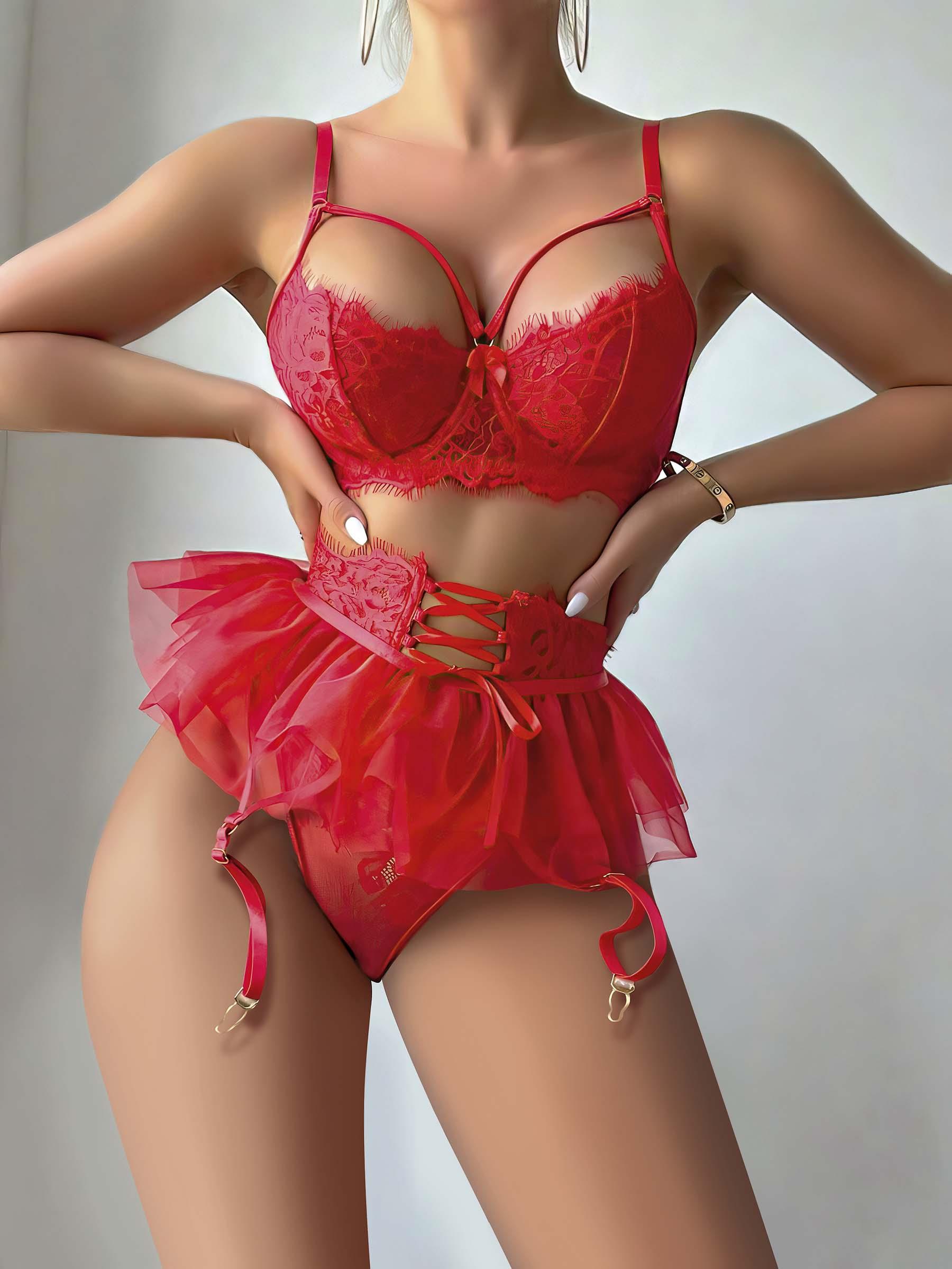 Kırmızı Etek Tül Fantezi Jartiyer Takım 2079