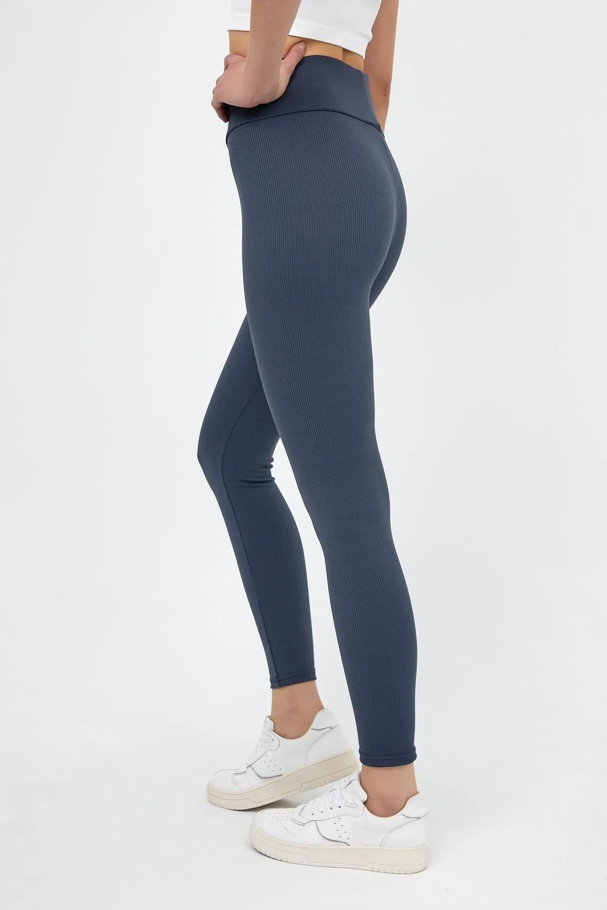 - Lacivert Yüksek Bel Fitilli Tayt 0608