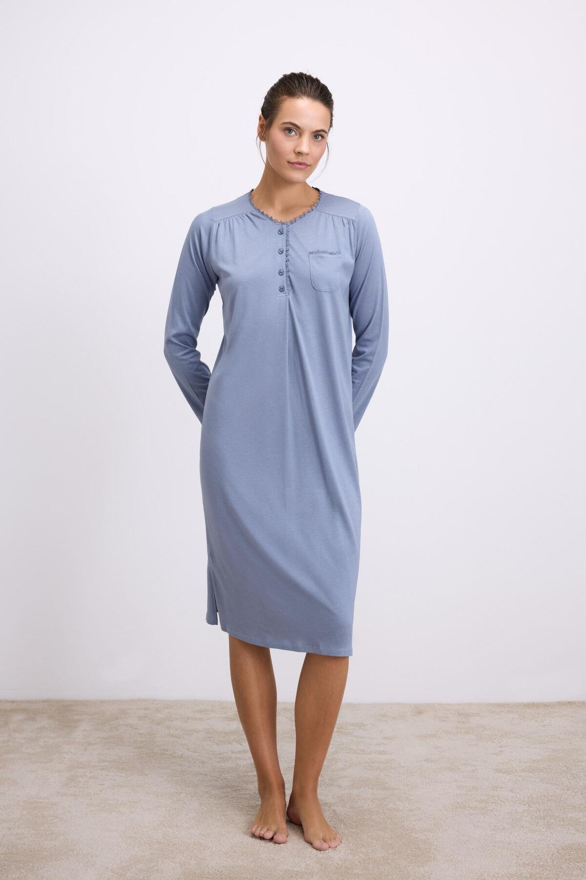 - Modal Uzun Kollu Düğmeli Gecelik
