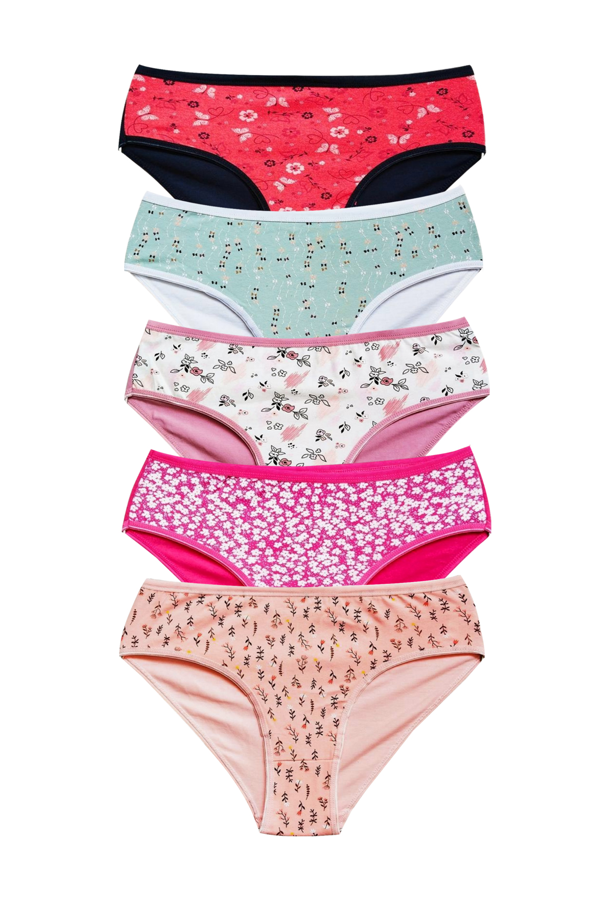 Pamuklu Geniş Kenarlı Likralı Desenli Bato Kadın Külot 5'li Paket Set 2