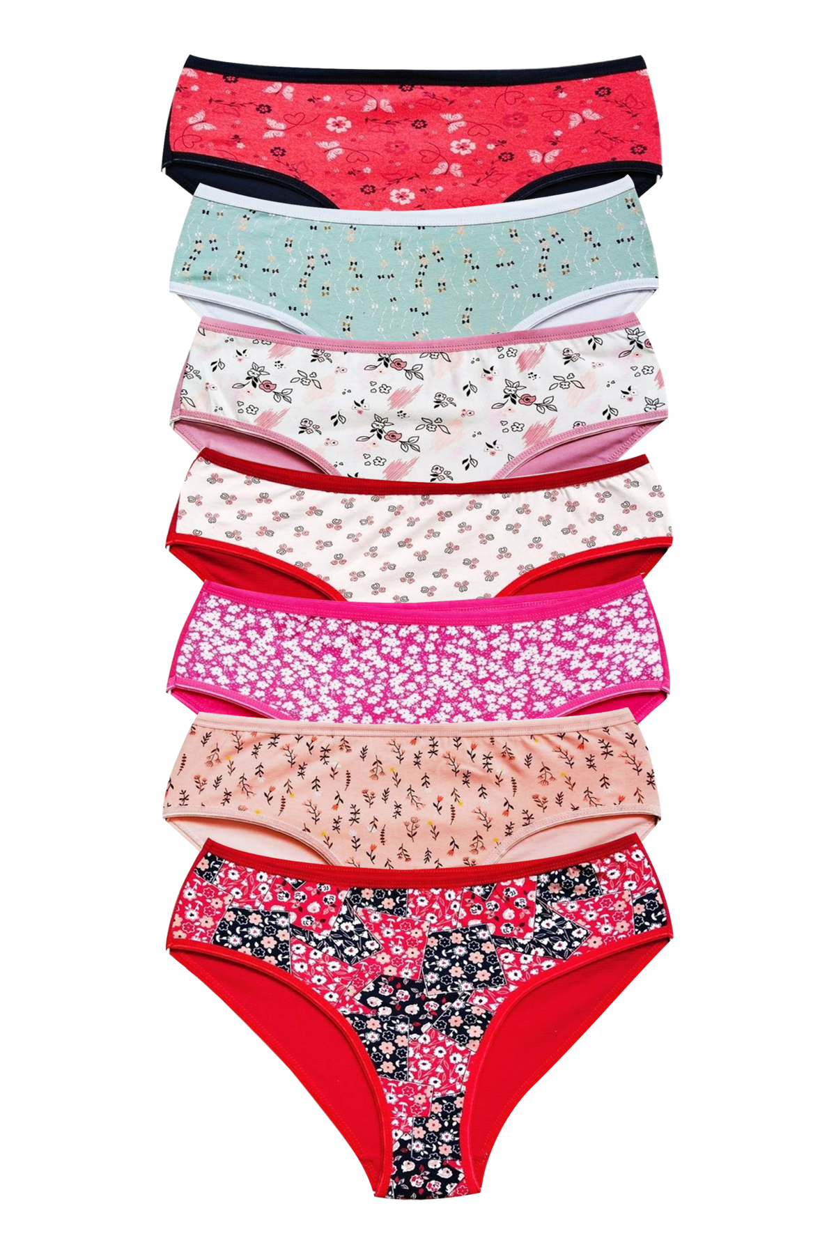 Pamuklu Geniş Kenarlı Likralı Desenli Bato Kadın Külot 7'li Paket