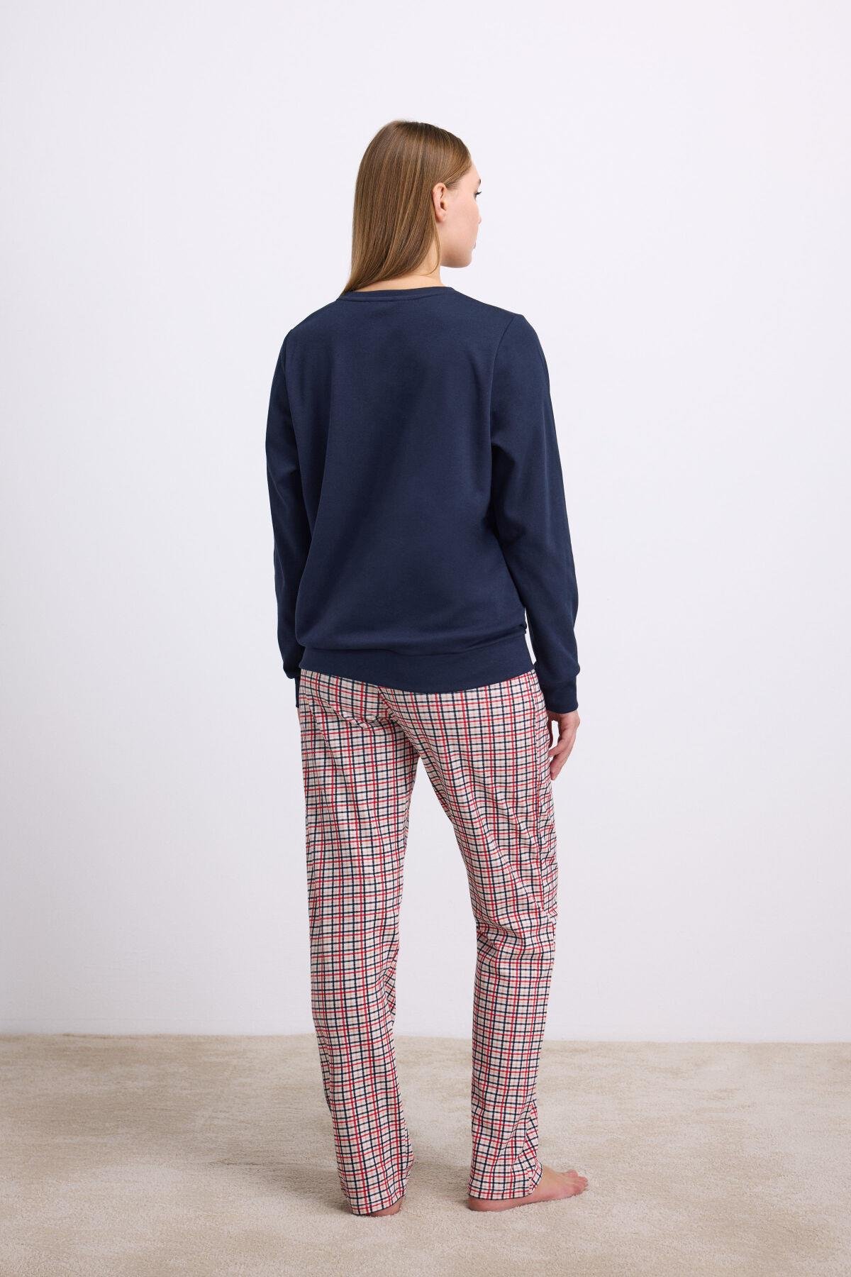 - Rahat Ve Şık %100 Pamuklu Uzun Kol Sweatshirt Ve Ekose Pantolon Pijama Takımı