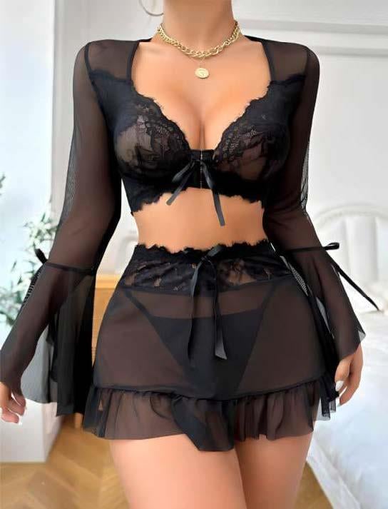 - Siyah Dantelli Etekli Fantezi Tül Bolero Sütyen Takım