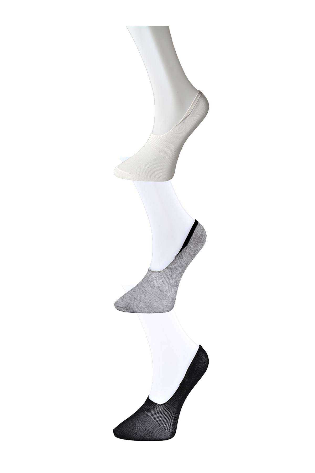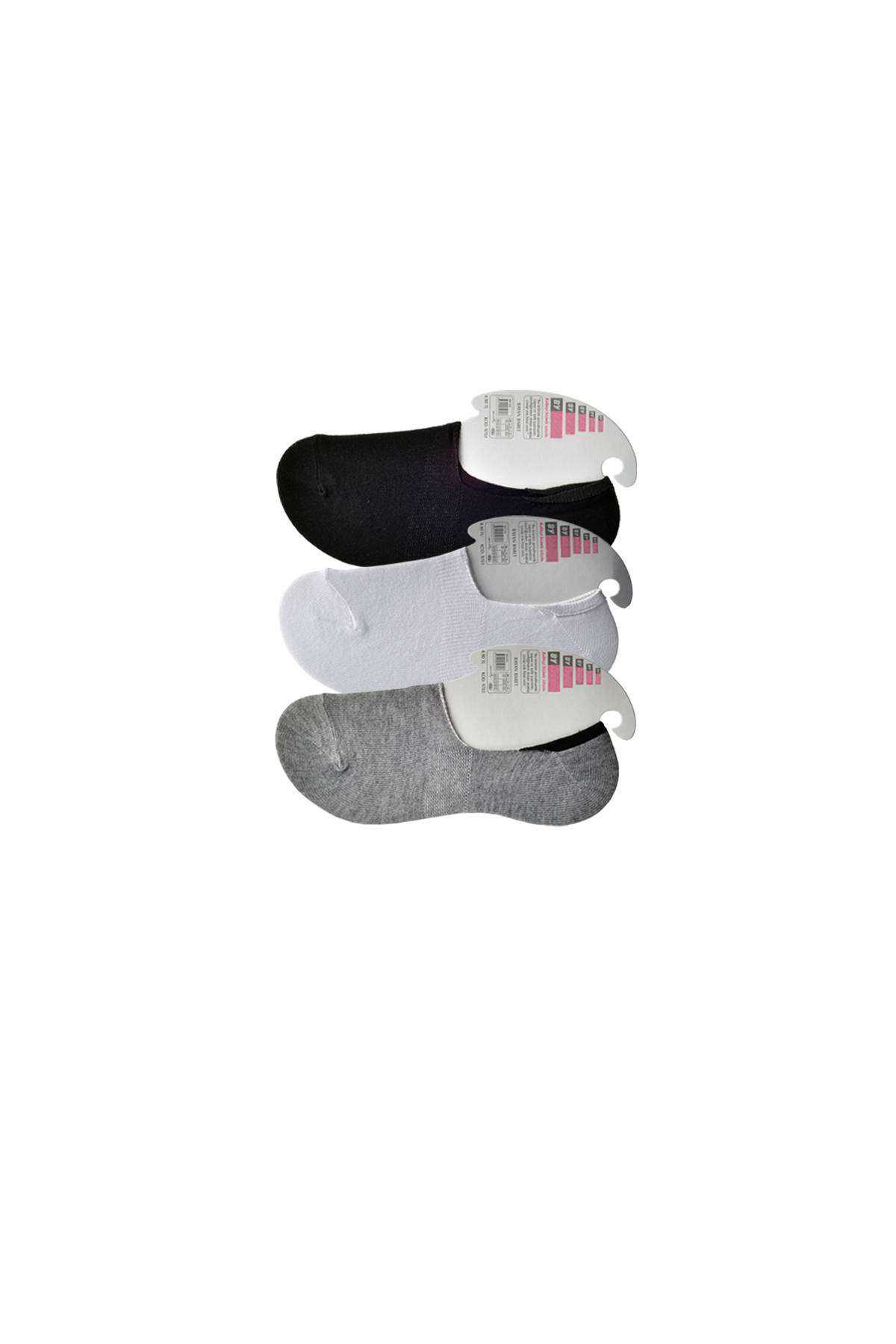 Siyah Gri Ve Beyaz Kadın Babet Çorap 3 Çift