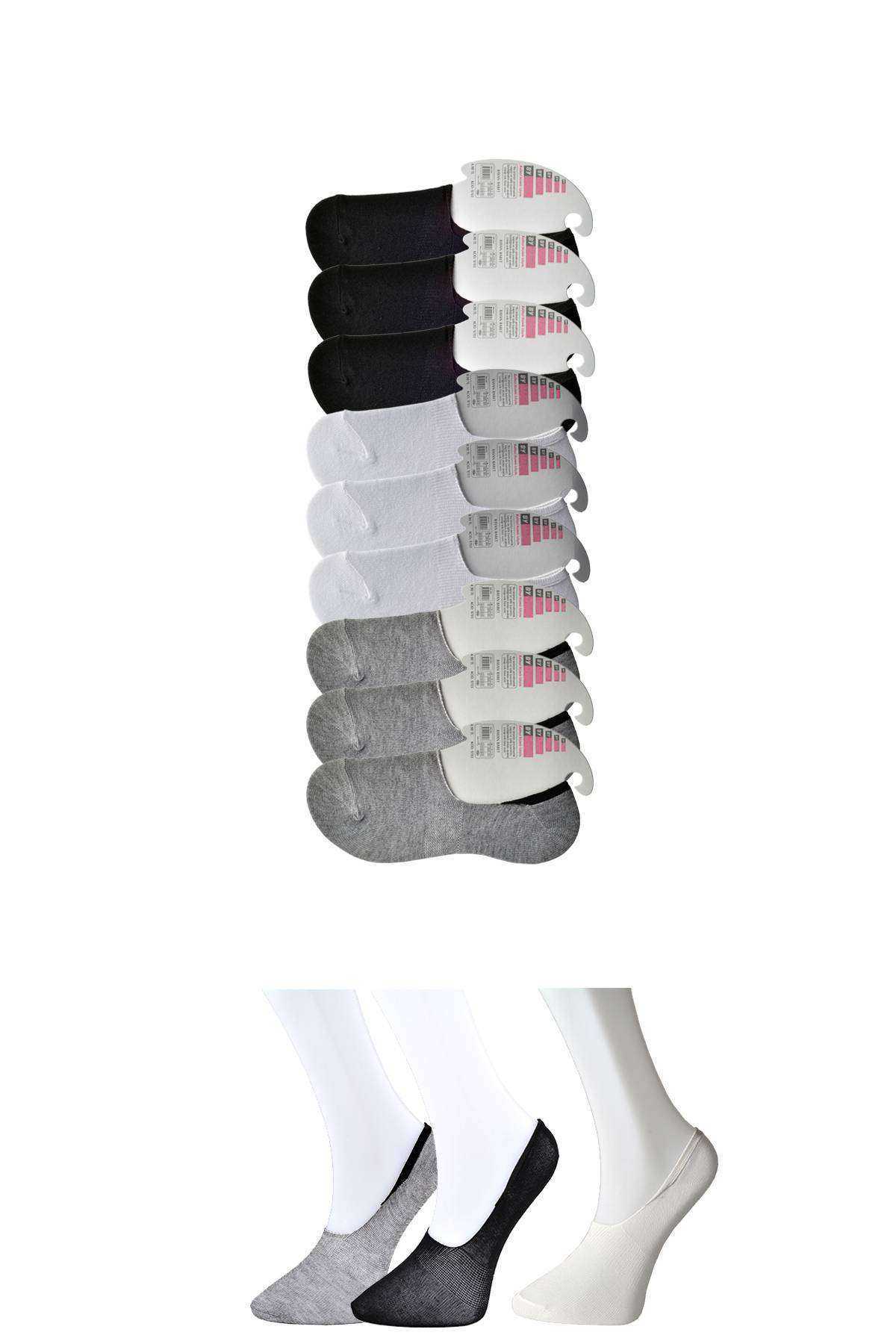 Siyah Gri Ve Beyaz Kadın Babet Çorap 9 Çift