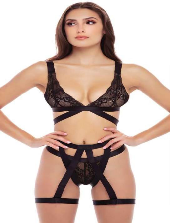 - Siyah İp Aksesuarlı Fantezi Jartiyer Takım