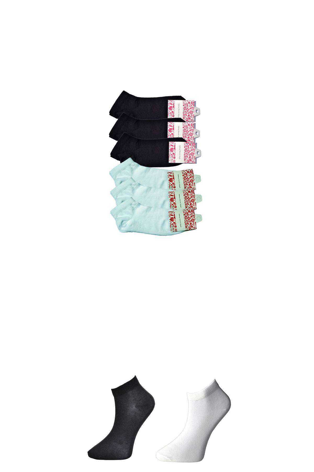 - Siyah Ve Beyaz Kadın Bilek Çorap 6 Çift