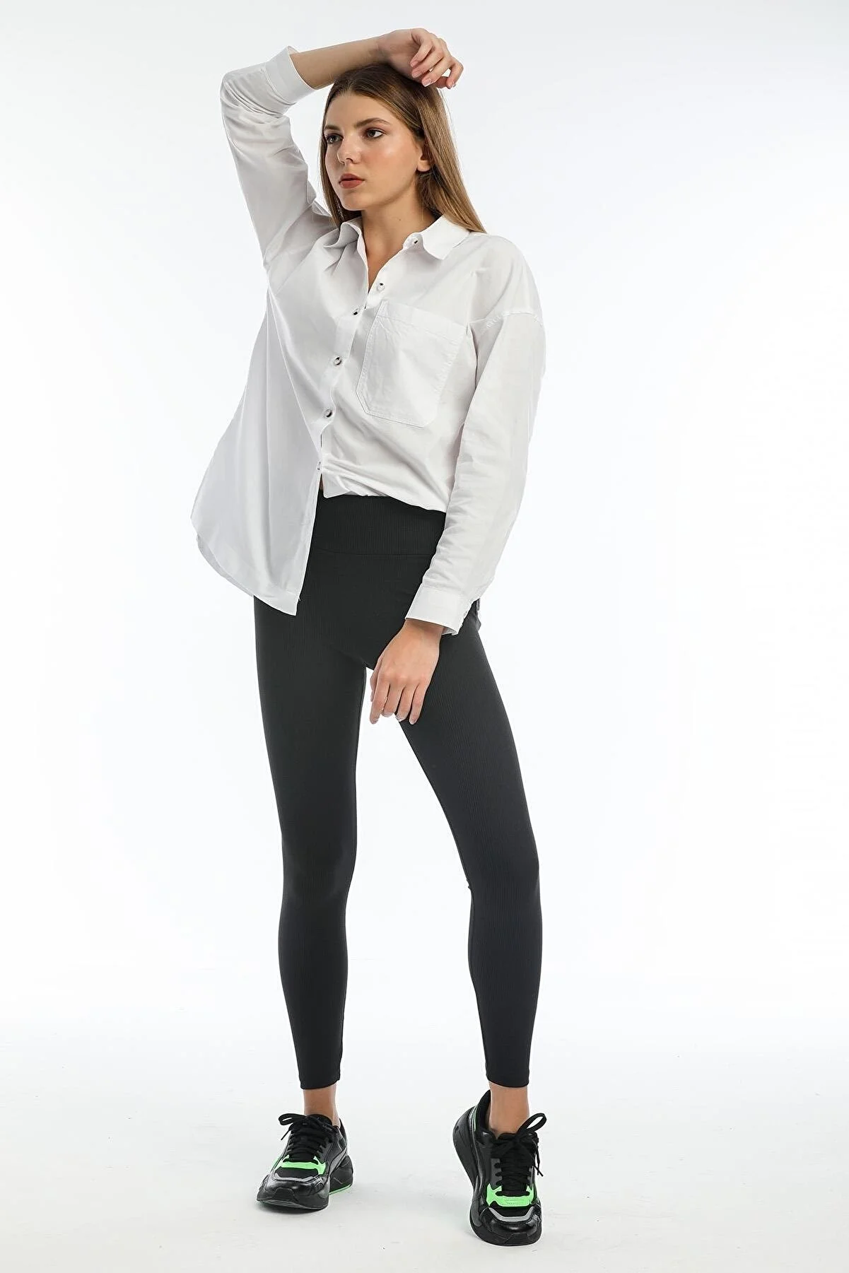 - Siyah Yüksek Bel Fitilli Tayt 0608