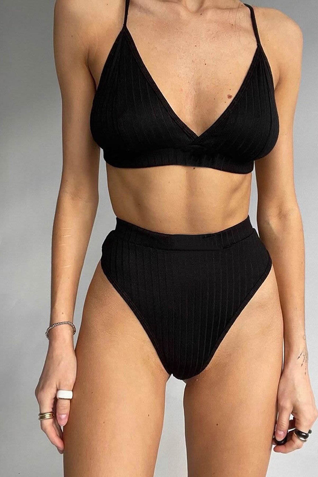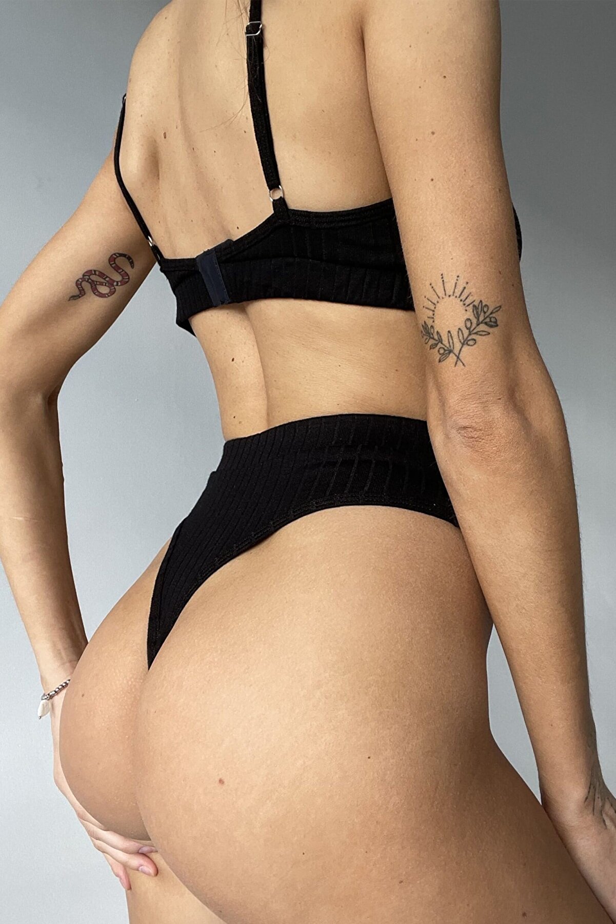 Kadın Siyah Yüksek Bel Dolgusuz Slip Takım