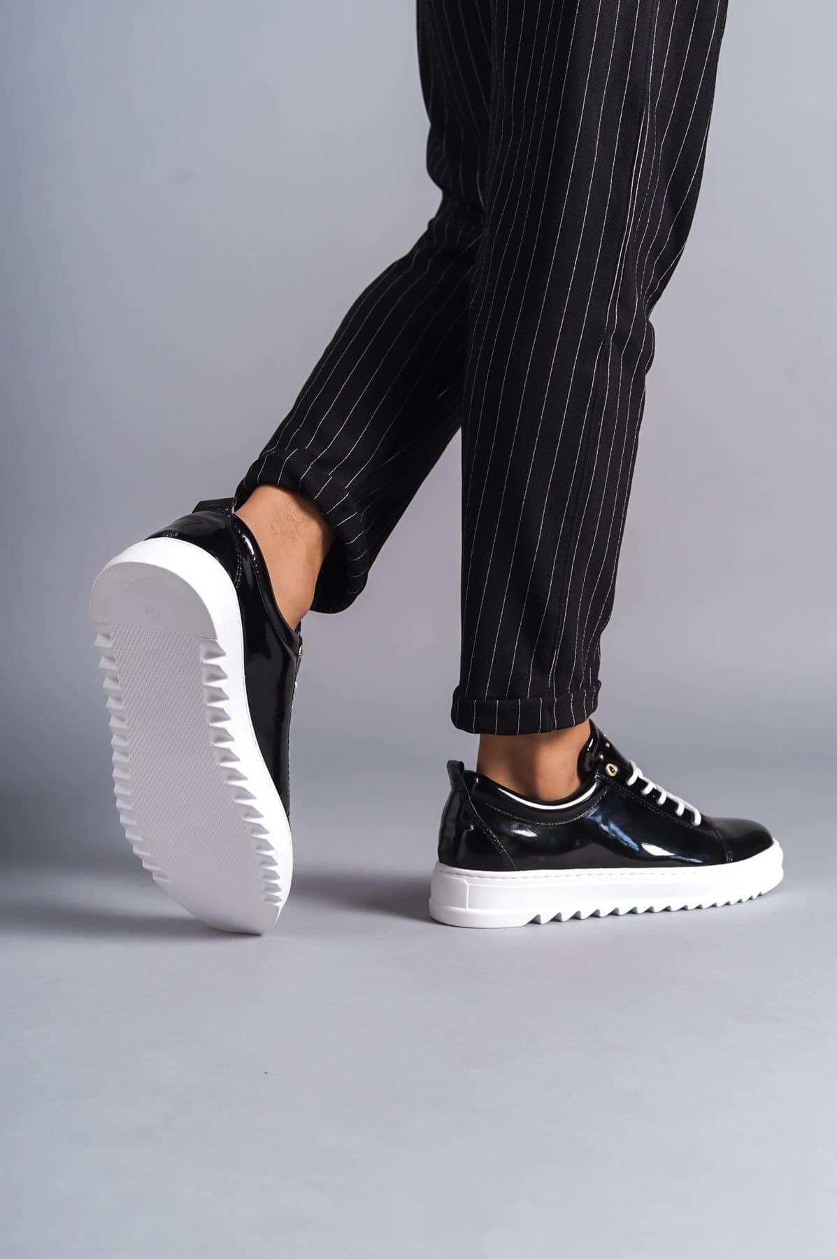 SLW152 Cool Bağcıklı Rugan Erkek Günlük Spor Klasik Ayakkabı RBT - Siyah
