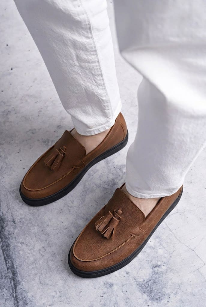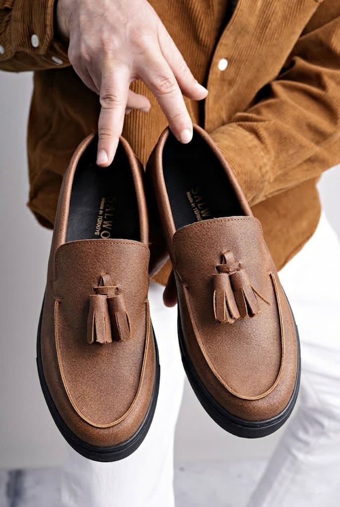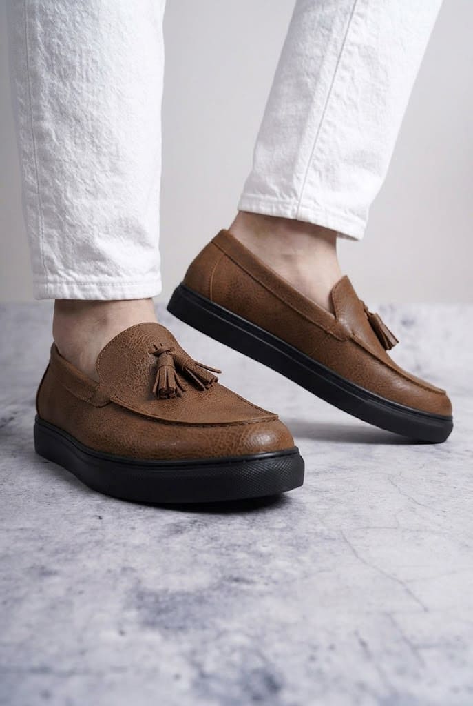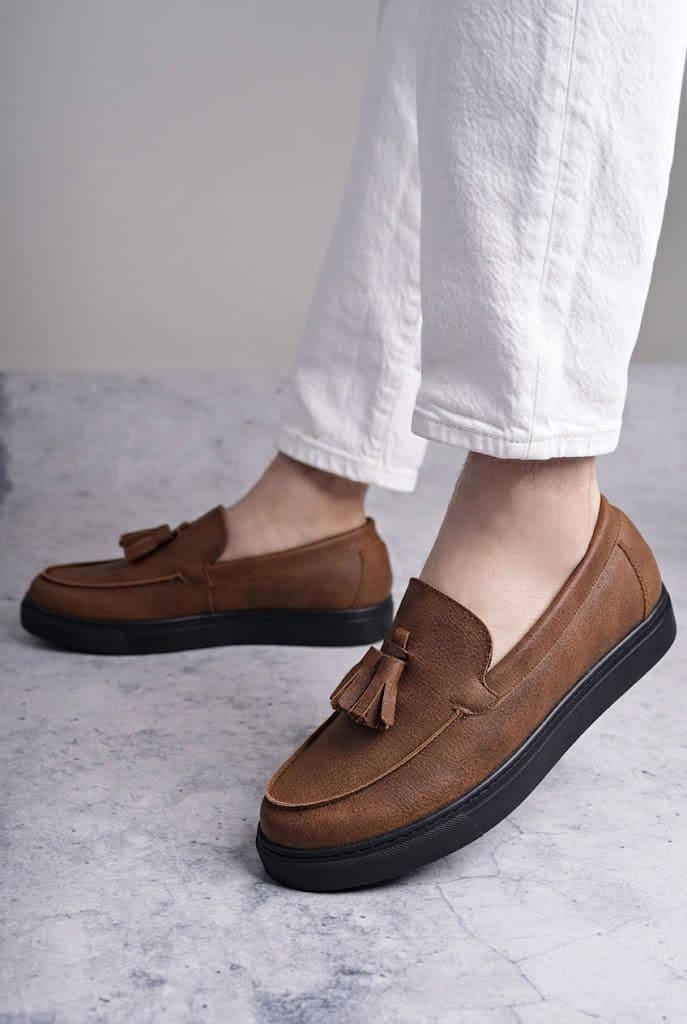SLW153 Bloom Bağcıksız Püsküllü Cilt Erkek Günlük Spor Klasik Ayakkabı CST - Taba
