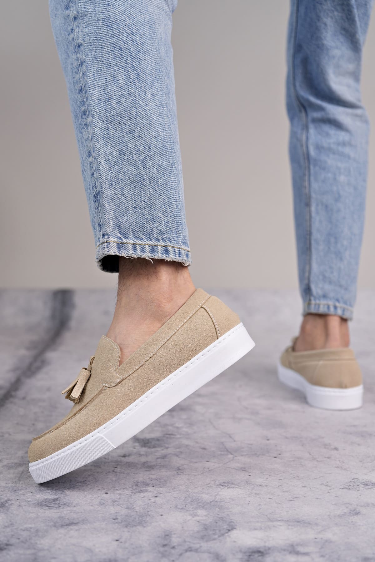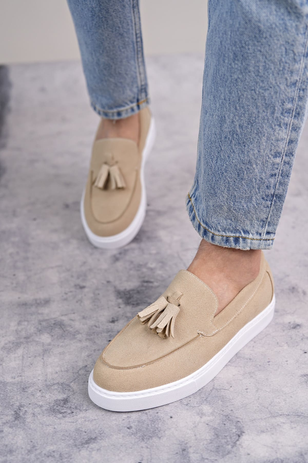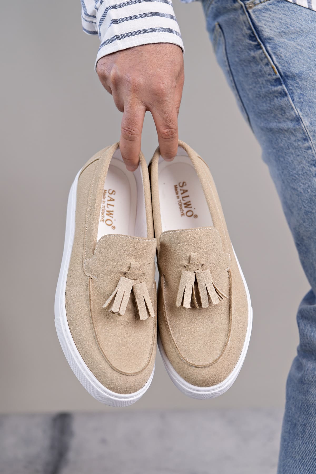 SLW153 Bloom: Krem Süet Püsküllü Erkek Günlük Ayakkabı