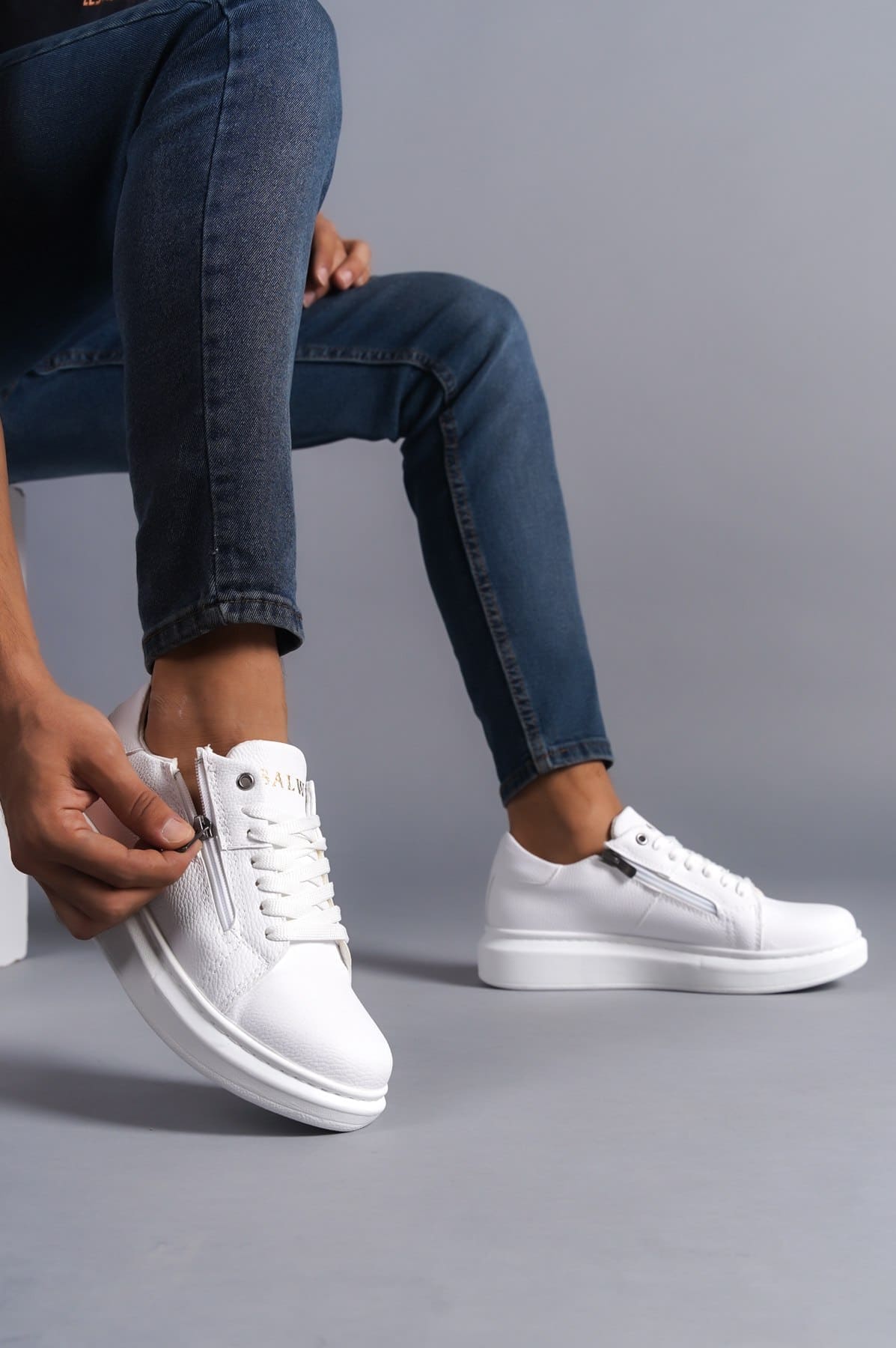 SLW155 Warrior Bağcıklı ve Fermuarlı Cilt Erkek Günlük Sneaker Ayakkabı CBT - Beyaz