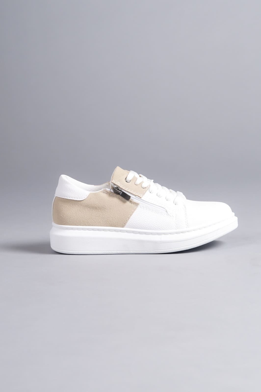 SLW155 Warrior Bağcıklı ve Fermuarlı Cilt Süet Erkek Günlük Sneaker Ayakkabı CSBT - Beyaz/Krem
