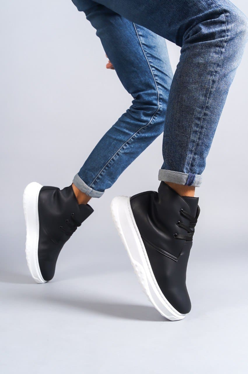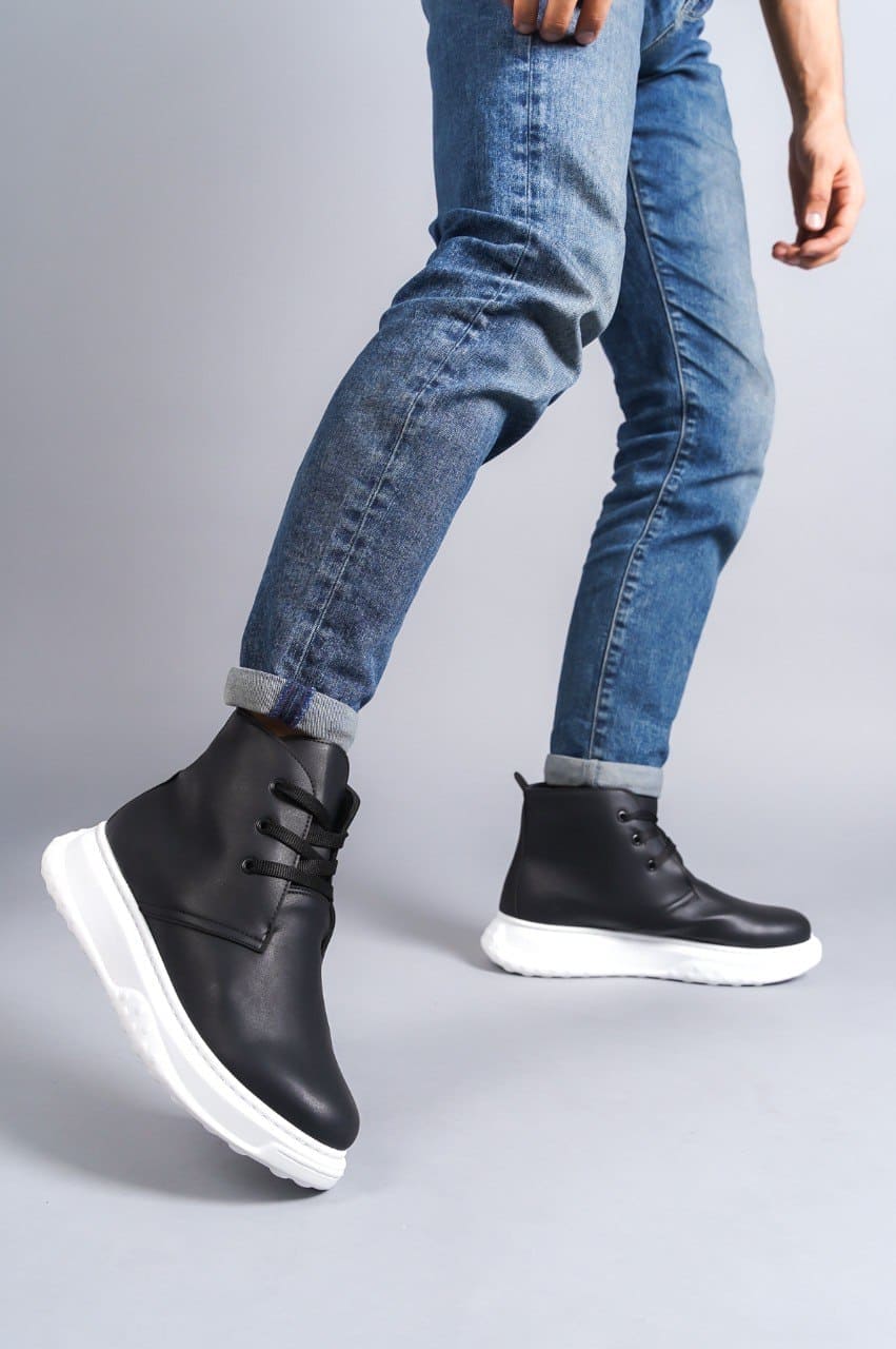 SLW204 Franca Bağcıklı Cilt Erkek Spor Bot BT - Siyah