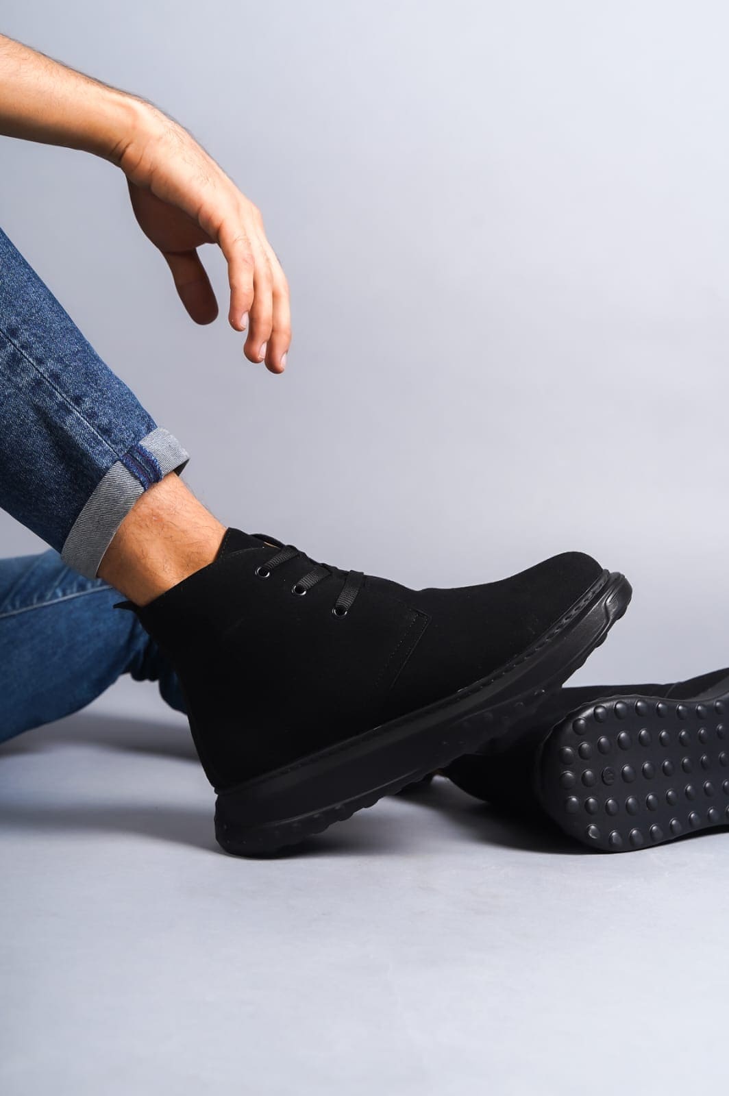 SLW204 Franca Bağcıklı Süet Erkek Spor Bot ST - Siyah