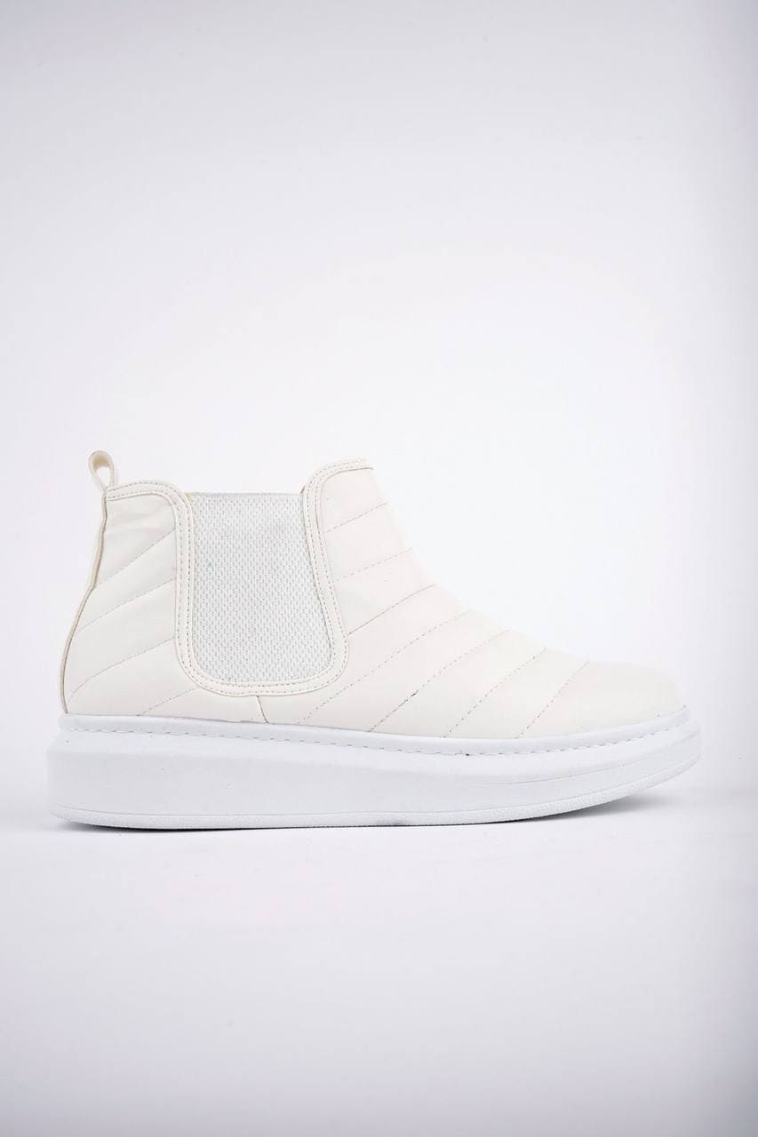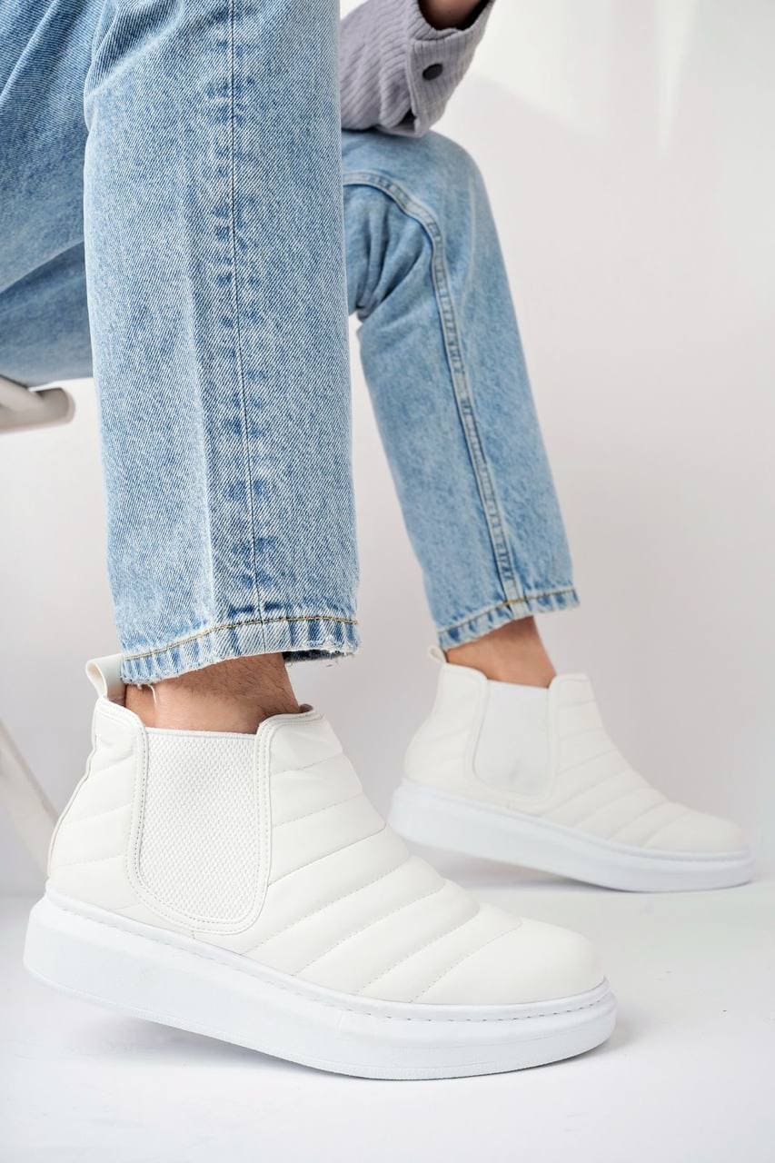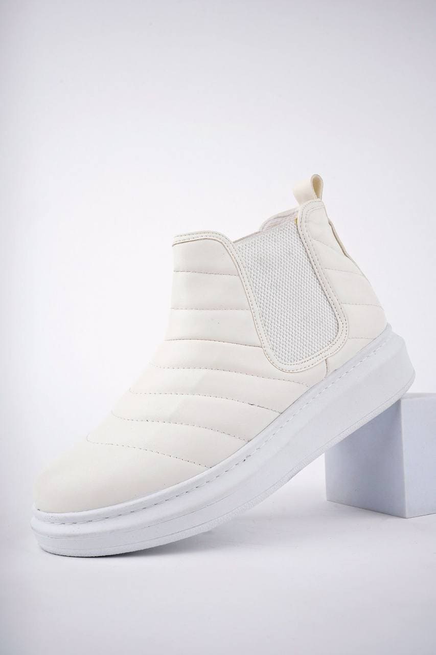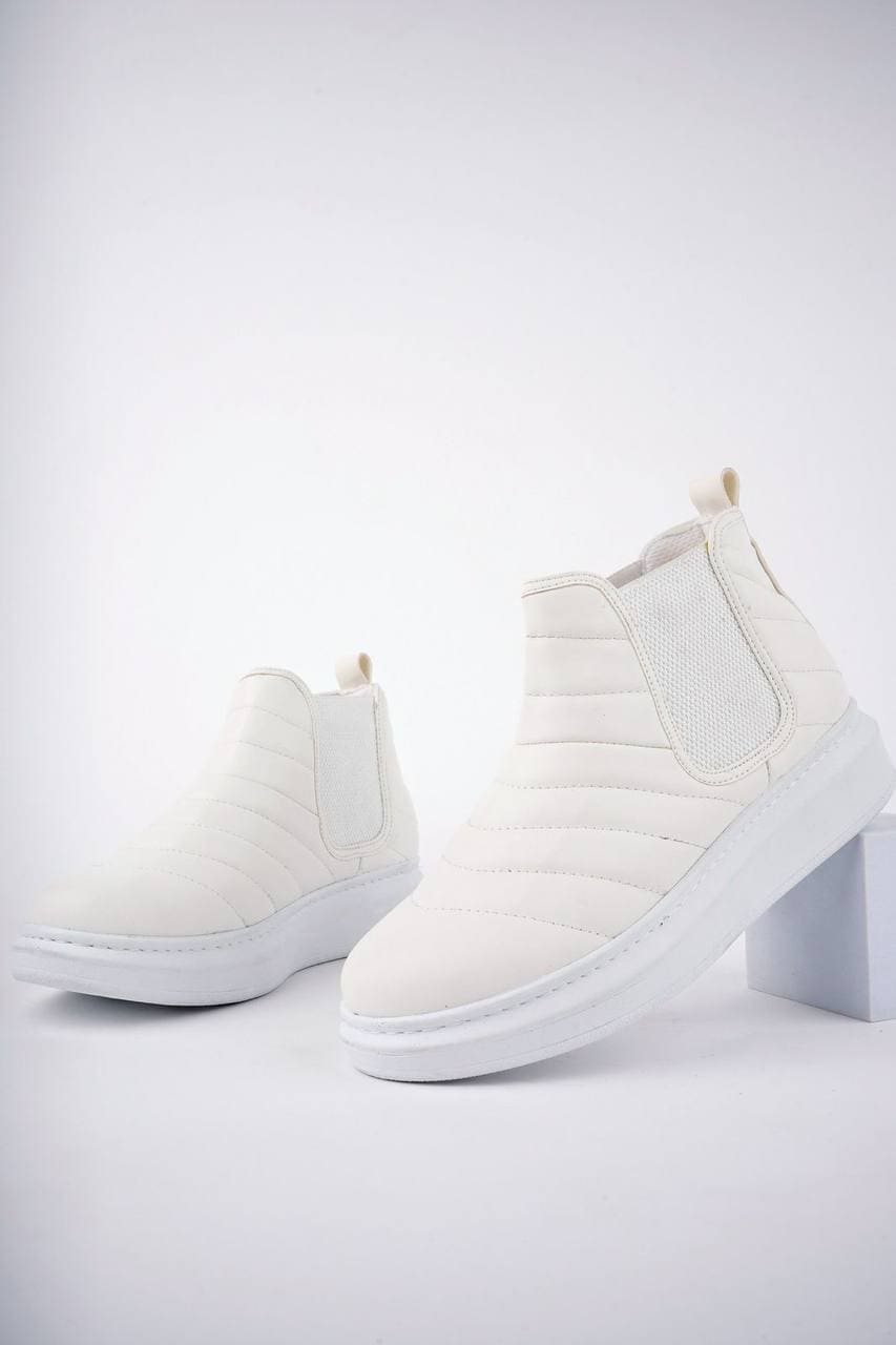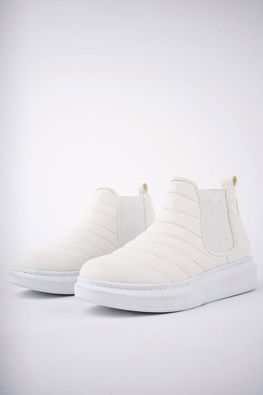 SLW205 Boston Bağcıksız Cilt Erkek Spor Bot BT - Beyaz