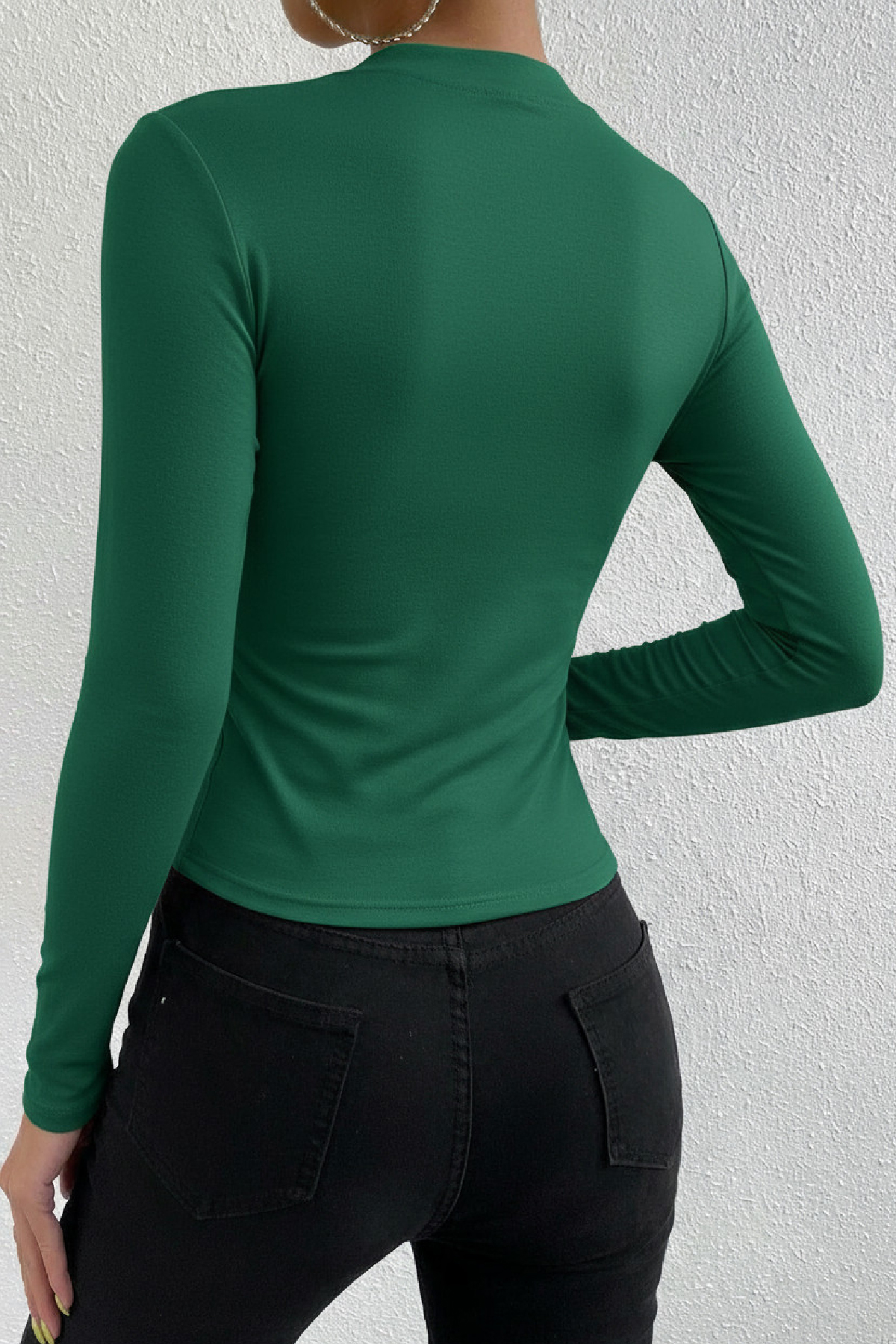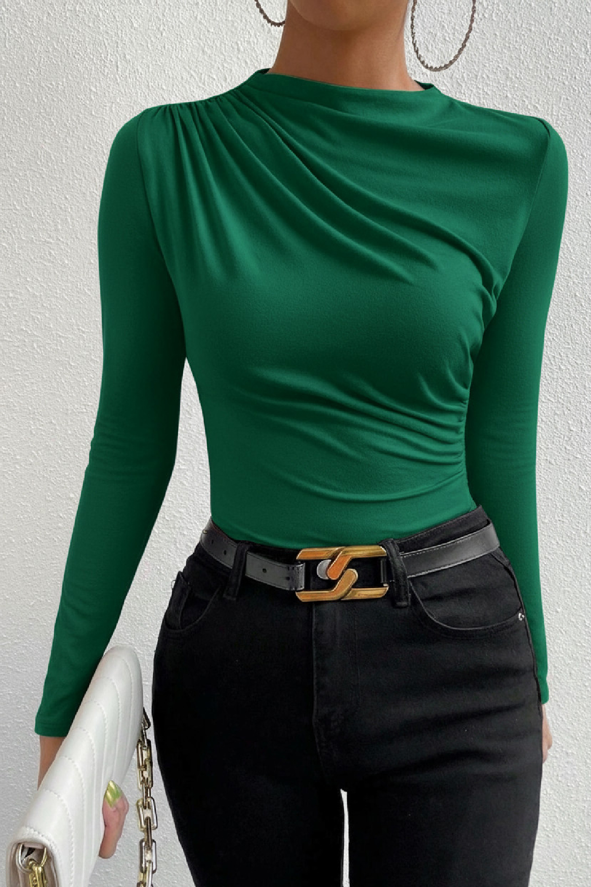 Zarafeti Vurgulayan Yeşil Büzgülü Uzun Kollu Bluz