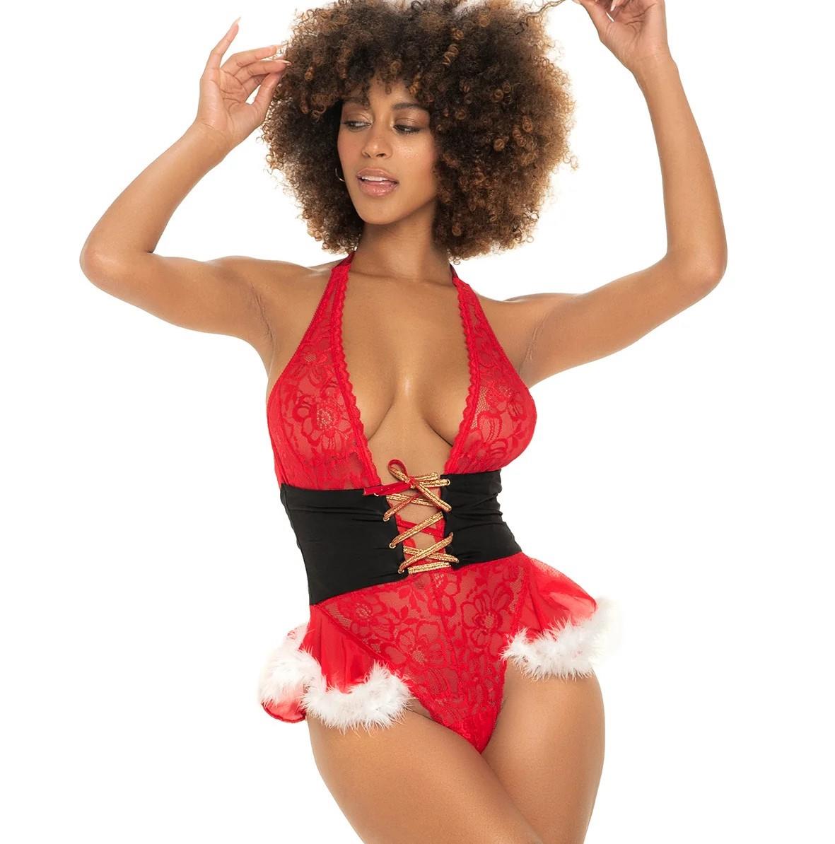 - Yılbaşı Özel Kırmızı Dantel Detaylı Fantezi Kostüm